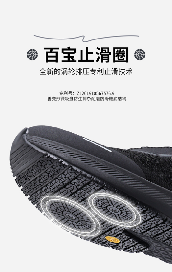 深耕防滑领域 20 年,百宝手握 20 + 项国家发明专利,还打破了欧美技术垄断。 鞋底采用 NBR 特种止滑橡胶,搭配涡轮吸盘结构和仿生轮花纹路,踩踏时形成负压吸附地面,还能快速排油排水,摩擦系数高达 0.8,是行业平均水平的两倍。 从湿地、油面到青苔石阶,四大核心止滑技术覆盖全场景,让长辈无论去哪都有底气。