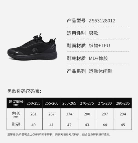 货号:ZS63128012 颜色:黑色 尺码:38-45 材质:鞋面 织物+TPU;中底 MD+橡胶
