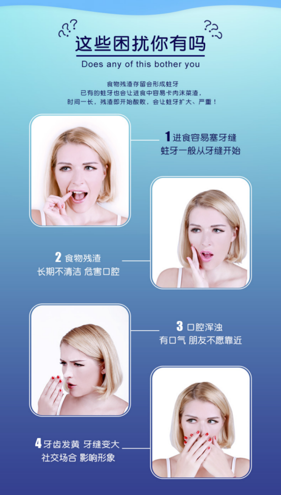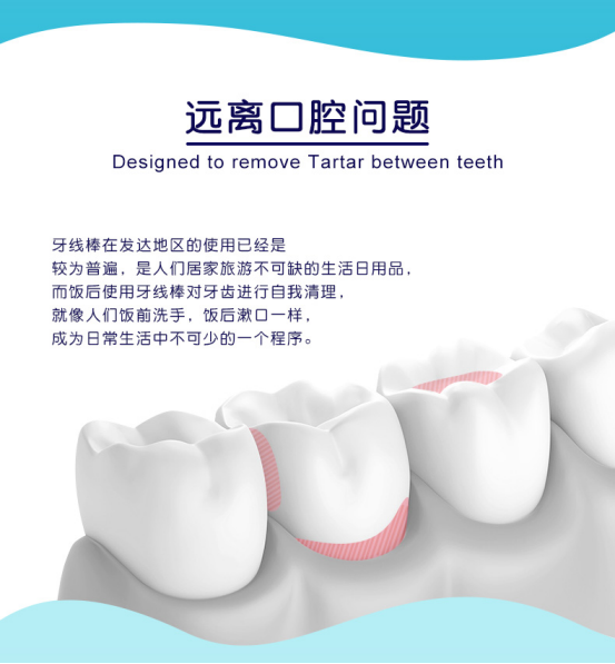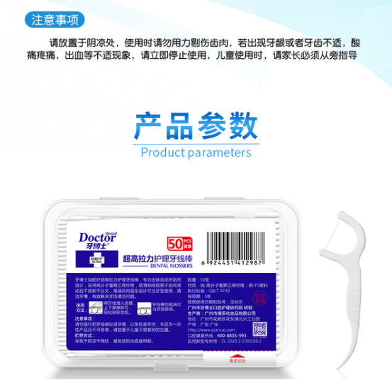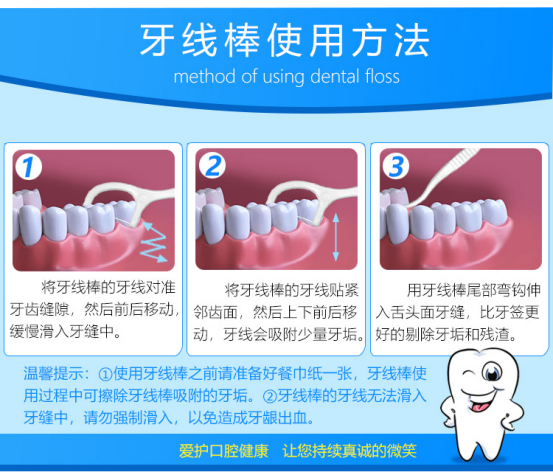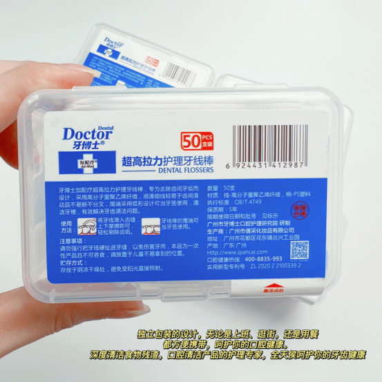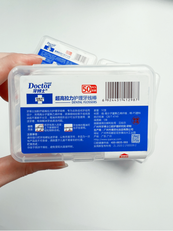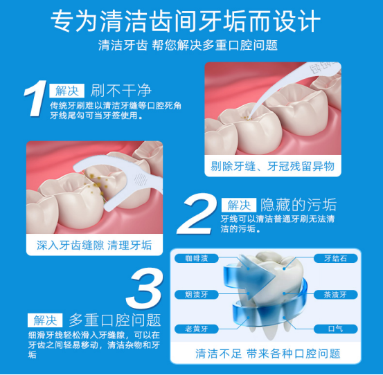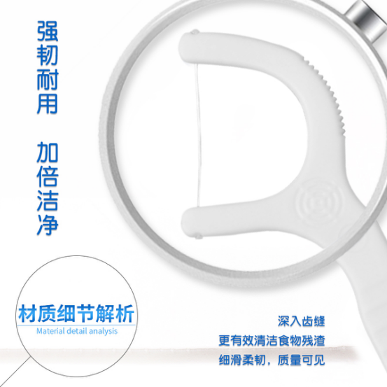 1:耐磨耐用,而且环保无毒无味,牙线头符合人体工学设计,牙齿咬合助力,轻松进线,平滑弧形设计,不伤牙龈,剔牙更省力。2:线材超细超柔软,能轻松滑入牙间的缝隙,使用无任何异物感,轻松拉出堵塞物、刮除菌斑,有效清除牙齿内侧牙垢,耐磨不易断,清洁更彻底,让整个口腔干净舒服,不塞牙也不塞心
