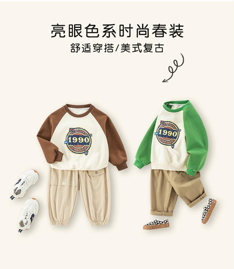 男童卫衣春季新款宝宝韩版复古上衣儿童圆领套头衫春装女童打底衫