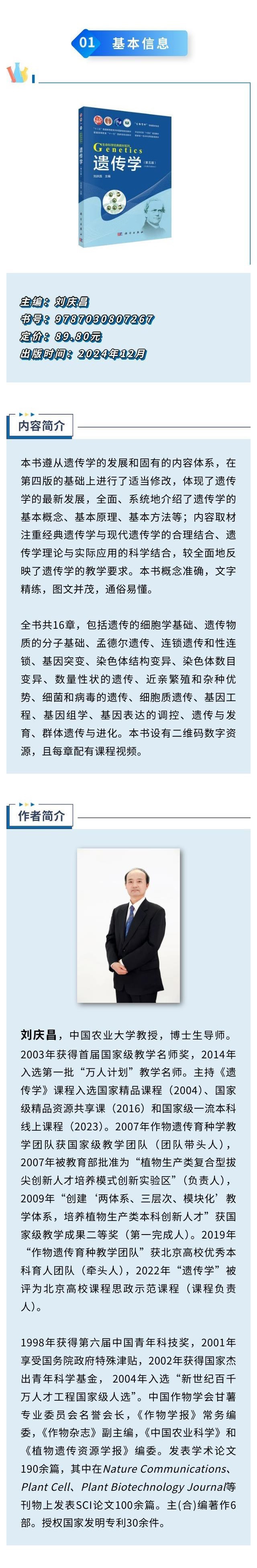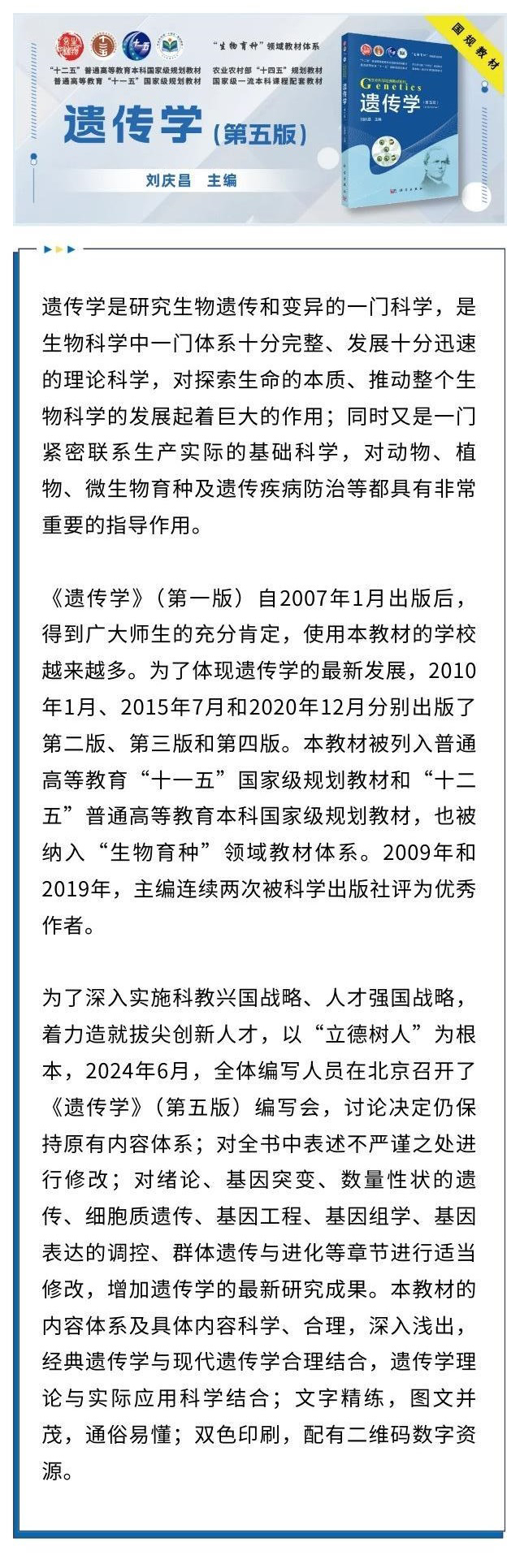 遗传学 第5五版 生命科学经典教材系列 刘庆昌 主编 系统地介绍了遗传学的基本概念 基本原理 基本方法等 9787030807267科学出版社