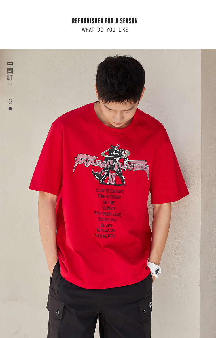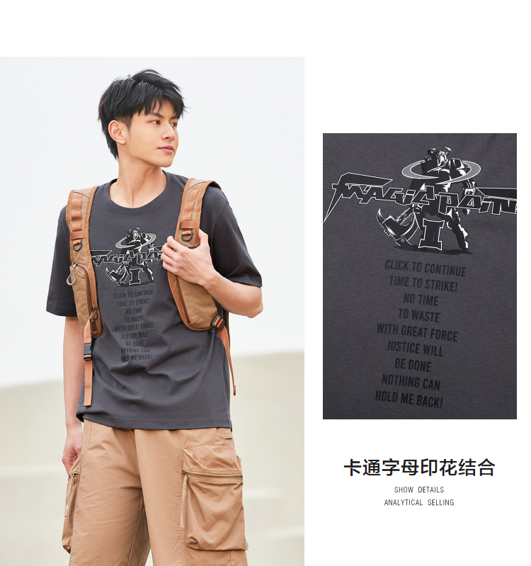 森马短袖T恤男个性卡通字母印花2022夏季新款帅气减龄男生上装潮-TDS