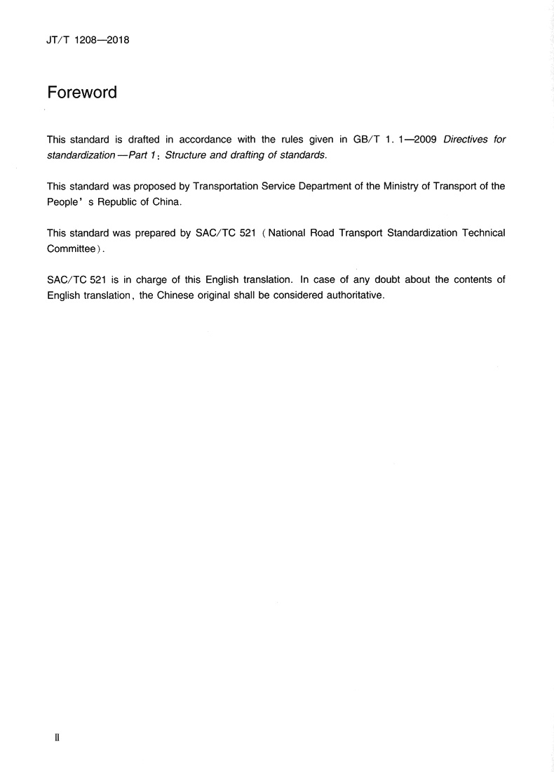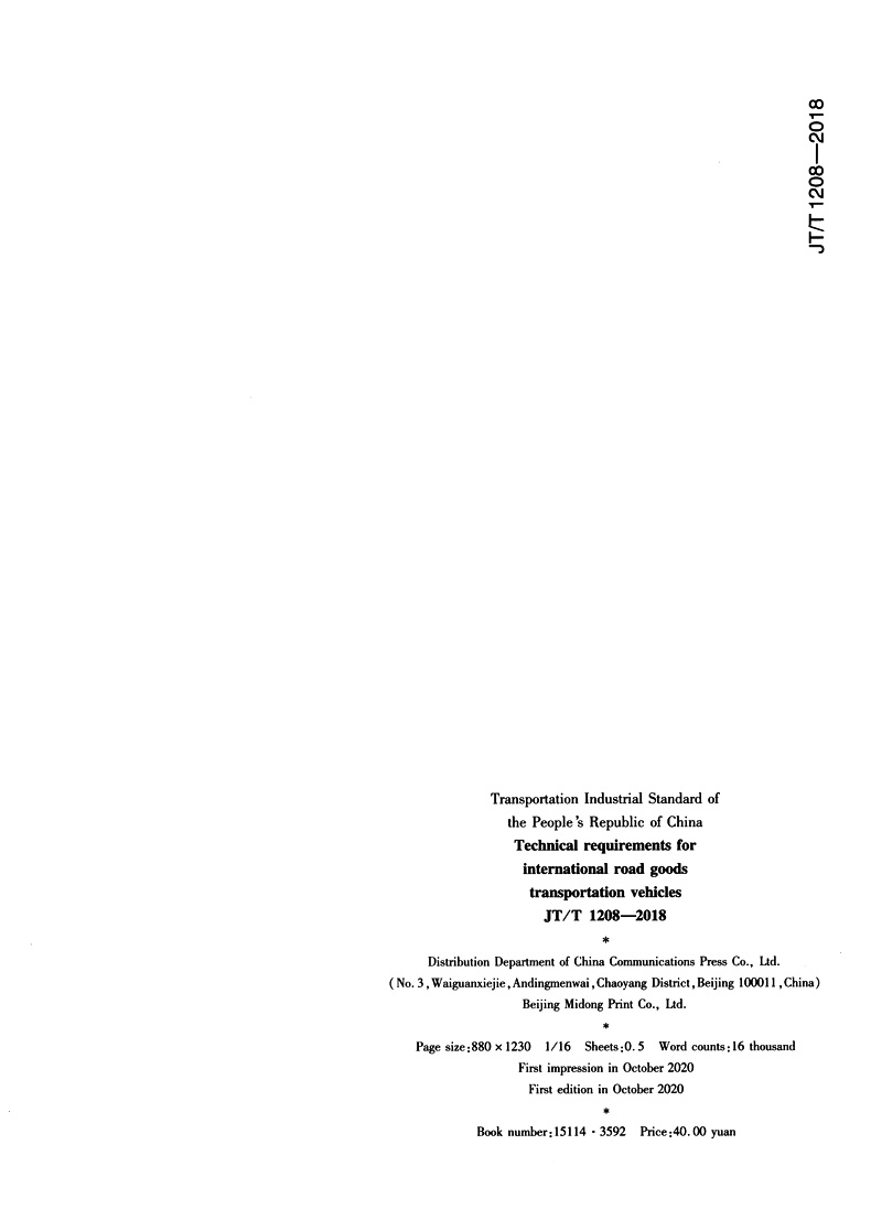 书名:国际道路货物运输车辆选型技术要求(JT/T 1208—2018)(EN)