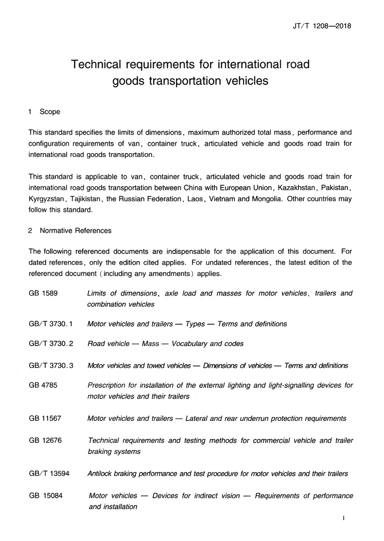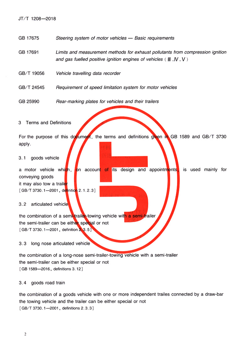 国际道路货物运输车辆选型技术要求(JT/T 1208—2018)(EN)