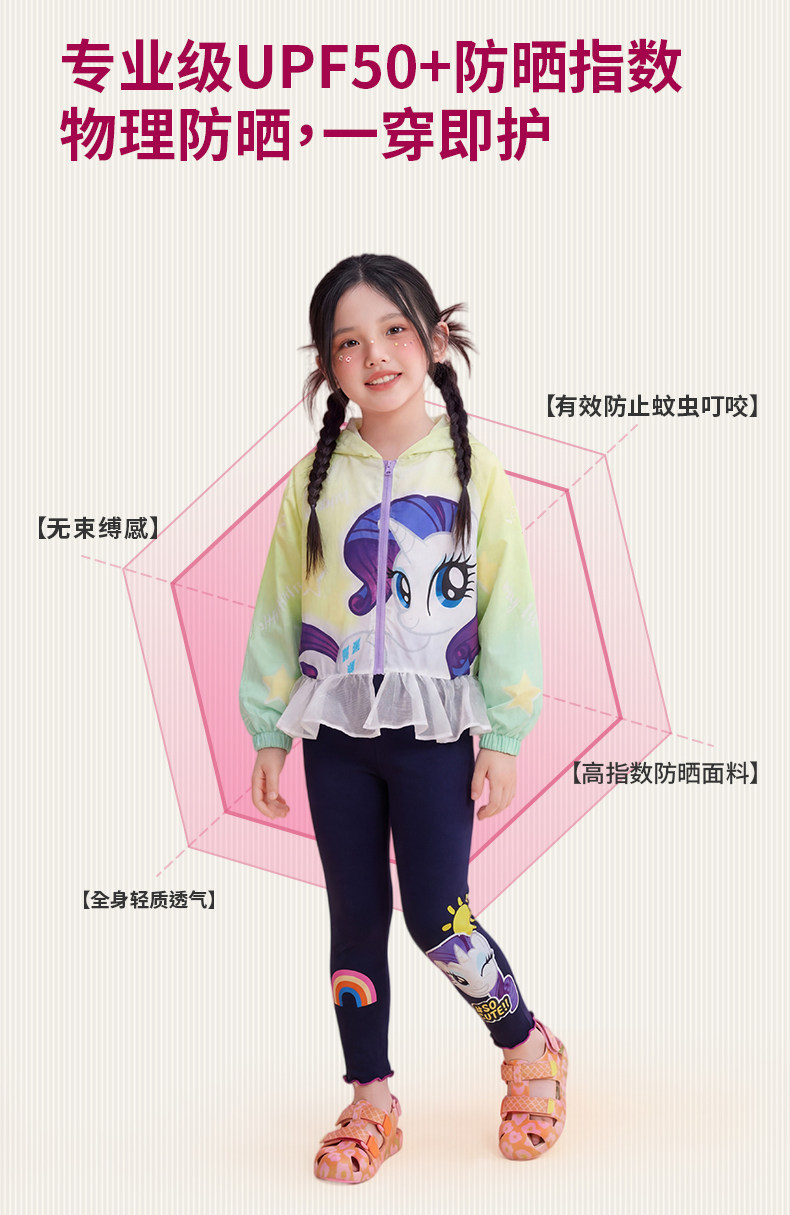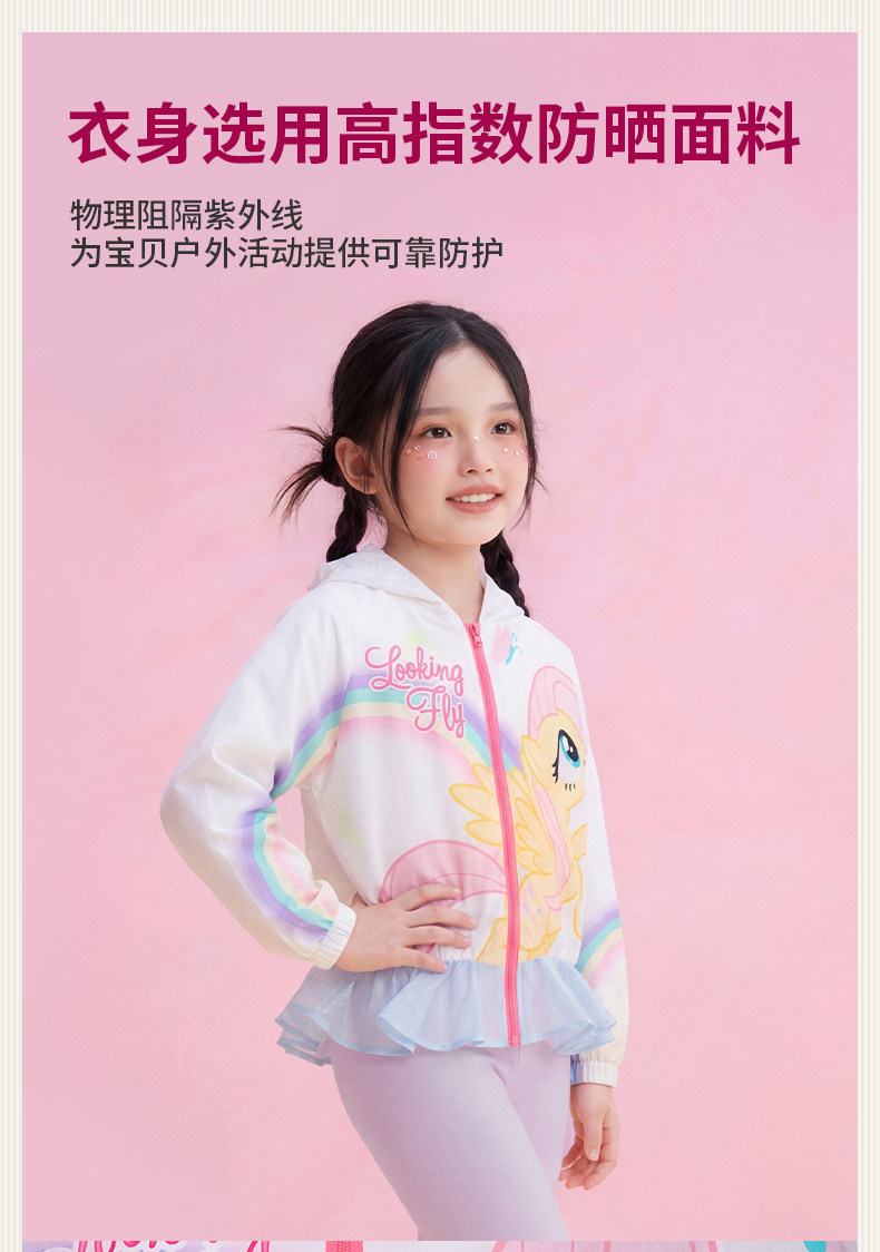 小马宝莉联名年衣童装防晒衣女童夏季新款卡通风可爱连帽外套上衣