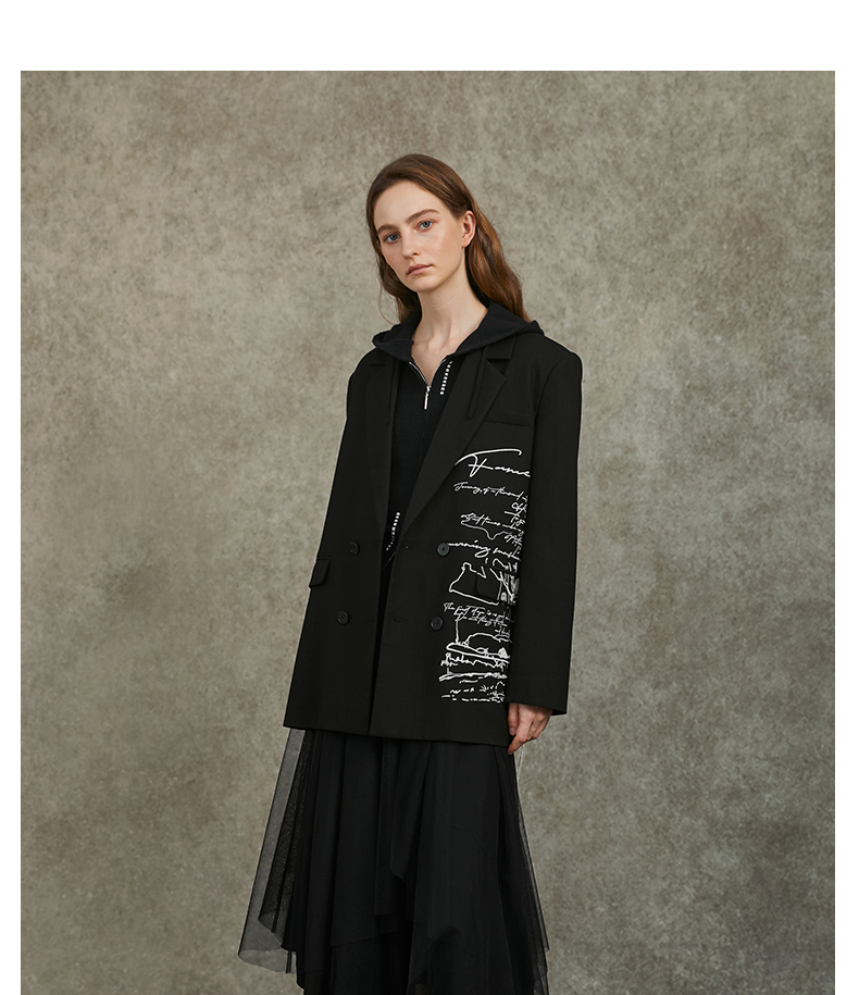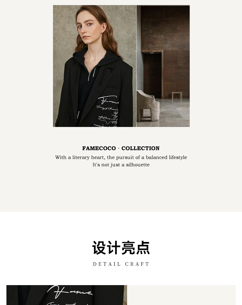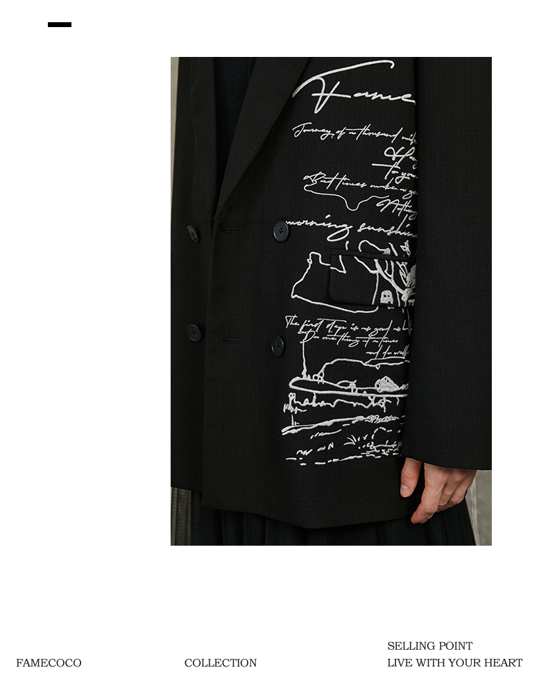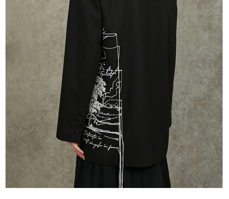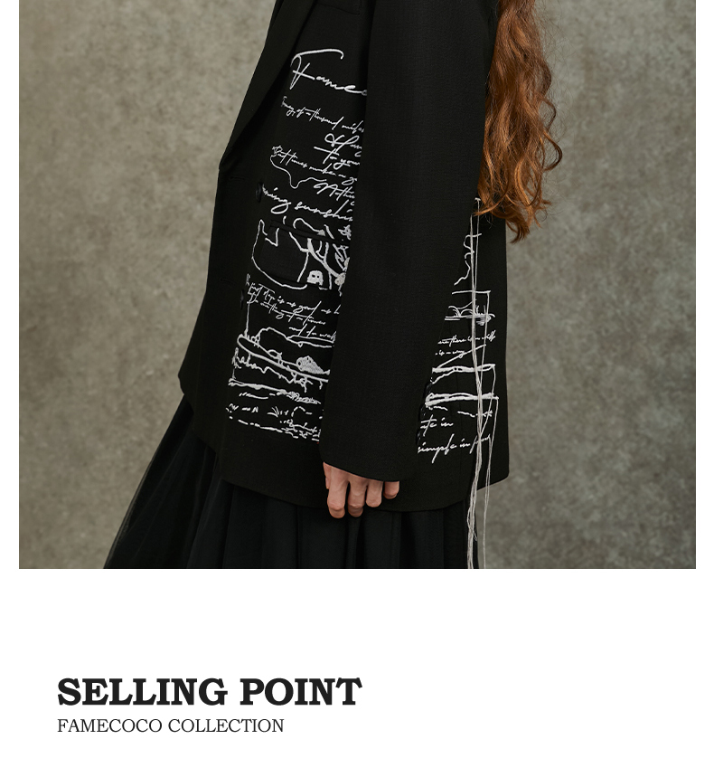 Famecoco范可儿文艺范高密精绣重工西装外套春秋款外套FAC6AW005