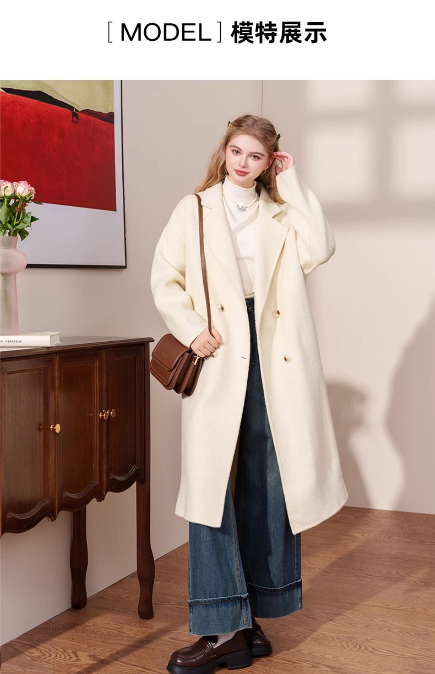 韩版翻领宽松小个子羊毛大衣F4241603