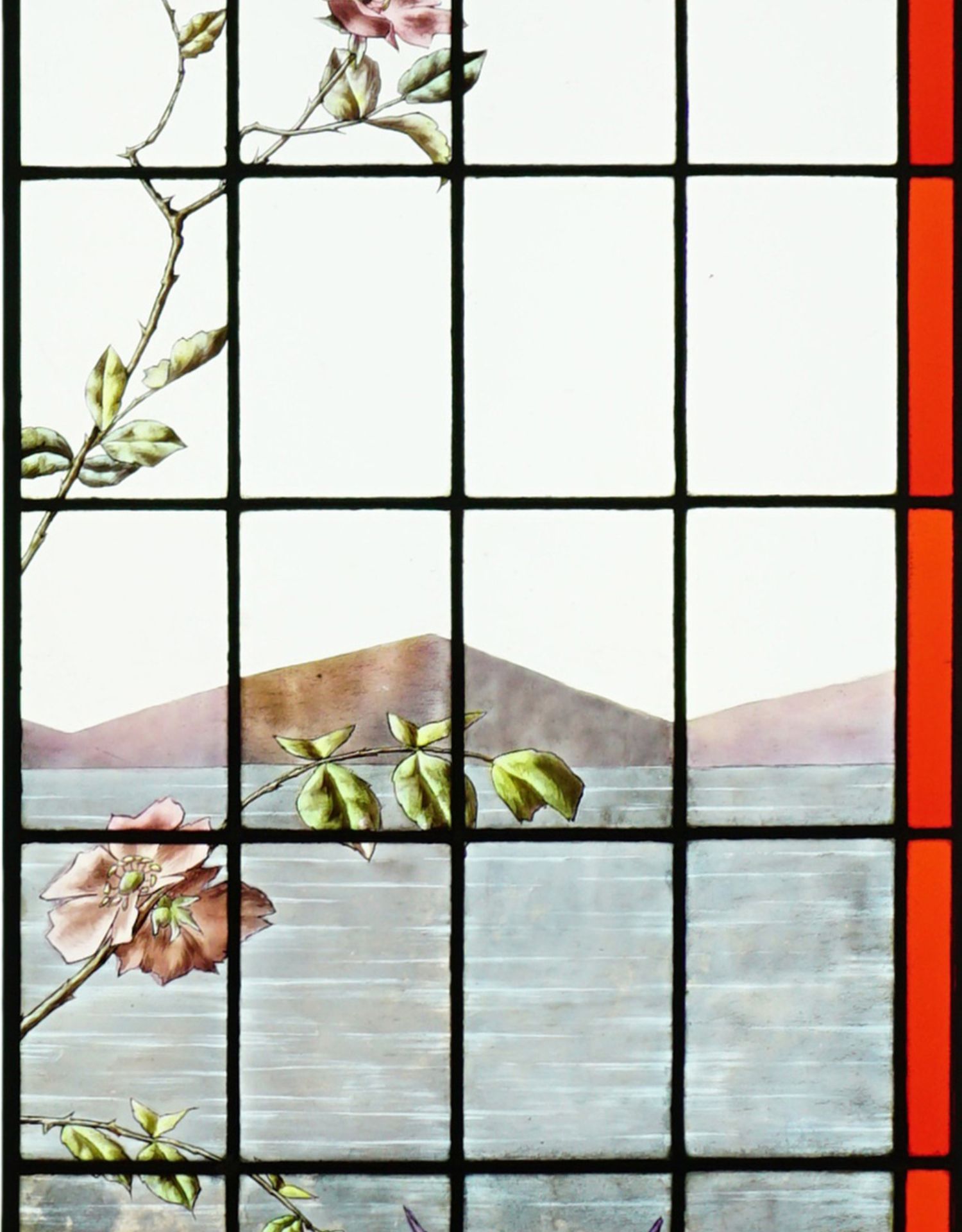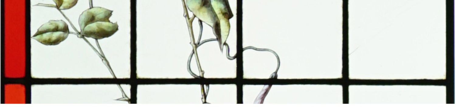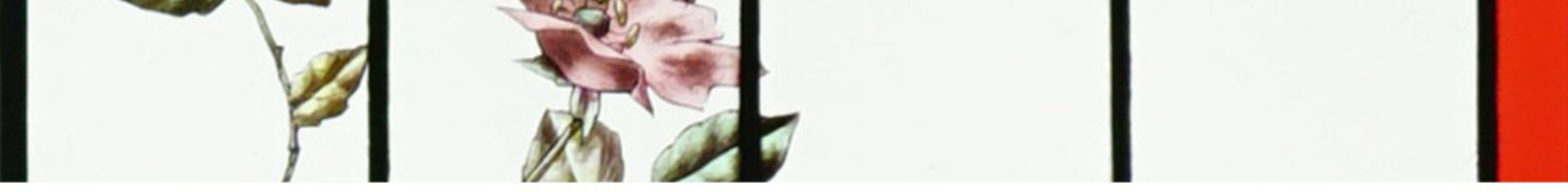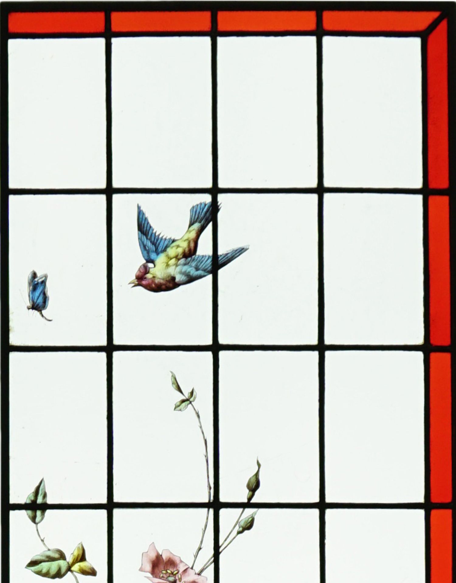 独角鹿西洋古董法国工坊花鸟飞蝶水边风景彩绘玻璃花窗一对