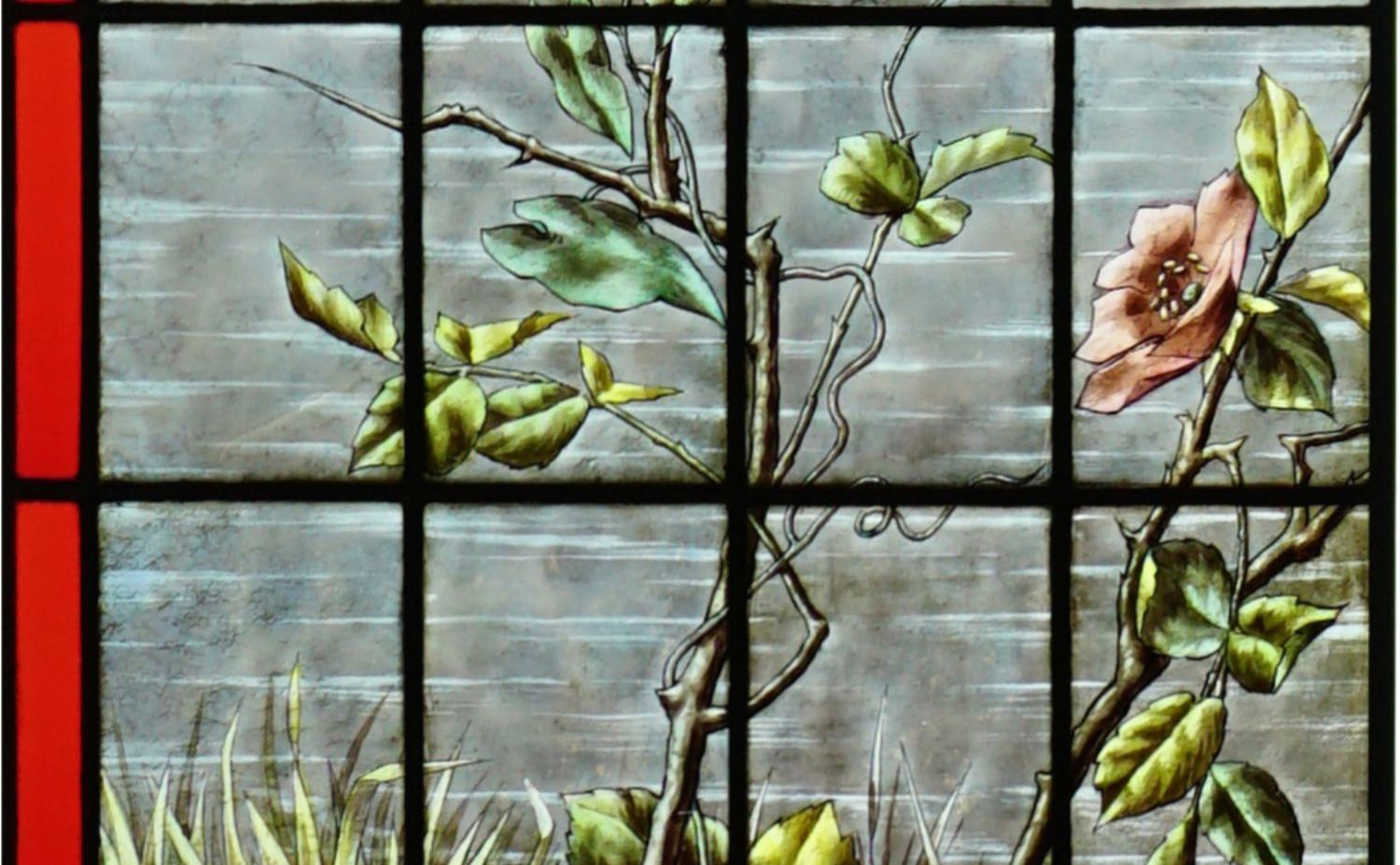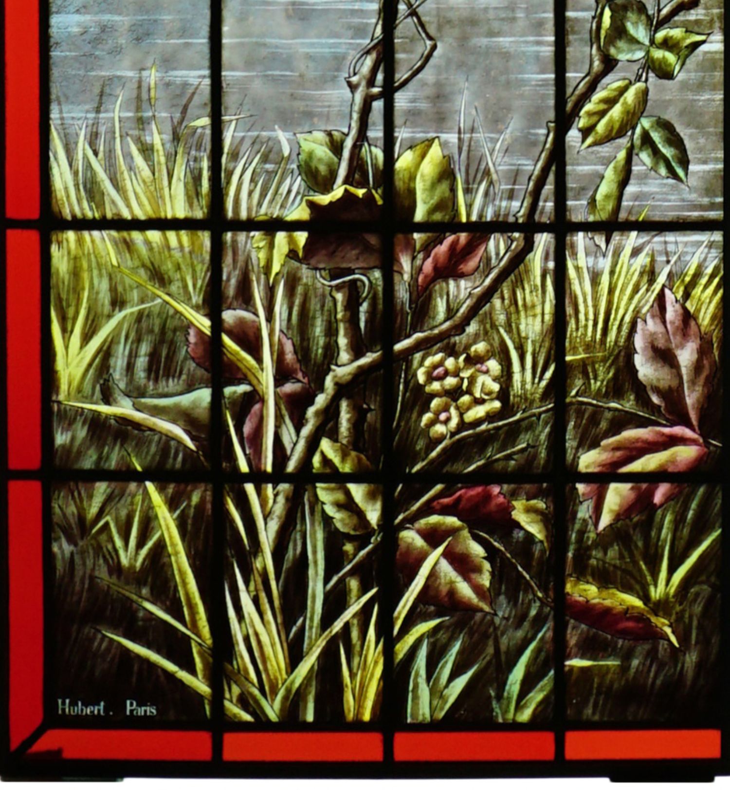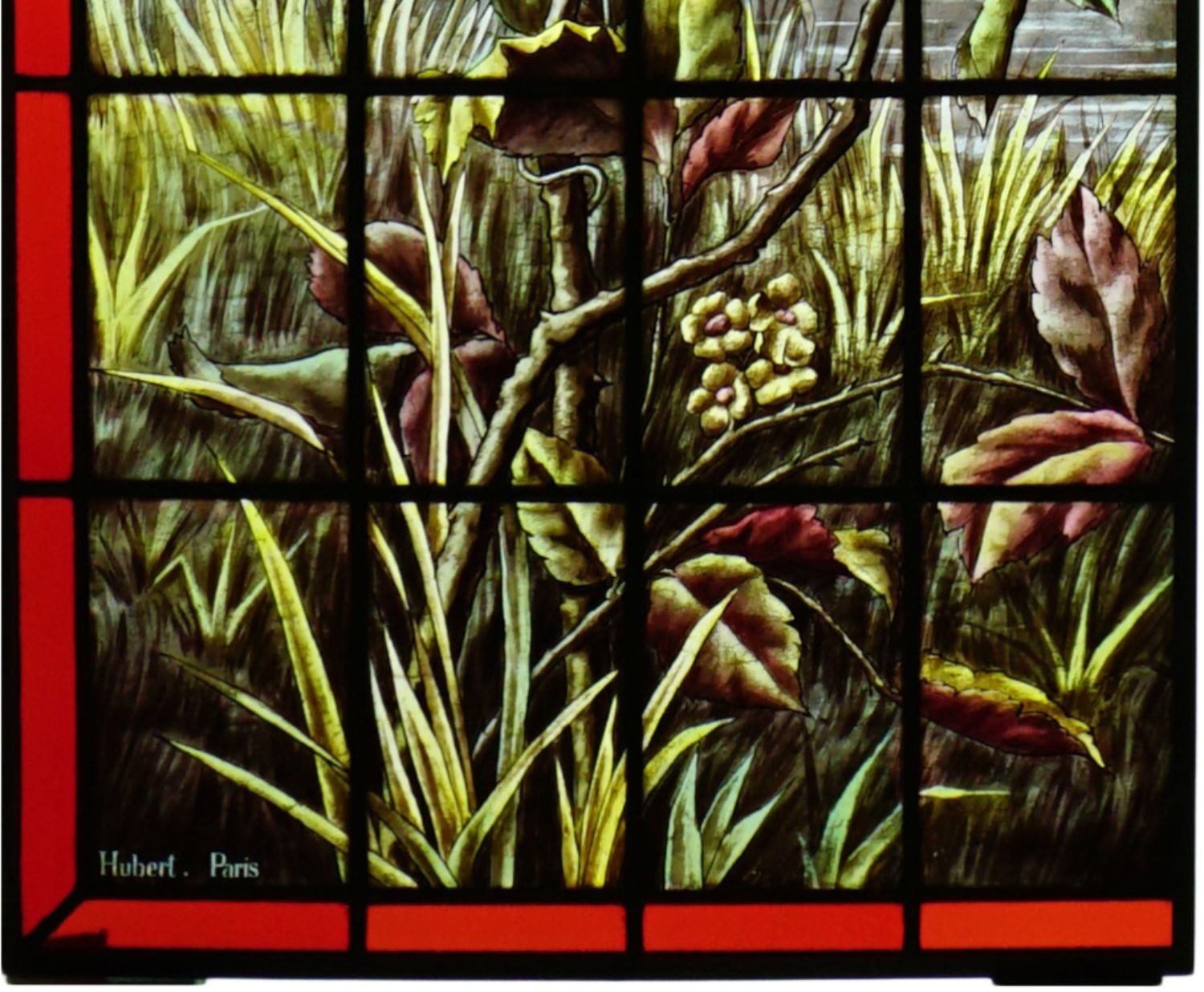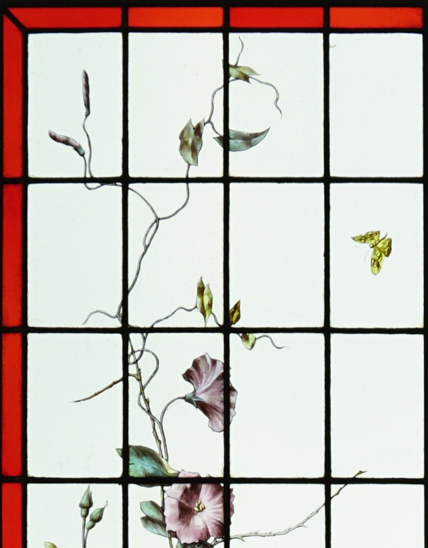 独角鹿西洋古董法国工坊花鸟飞蝶水边风景彩绘玻璃花窗一对