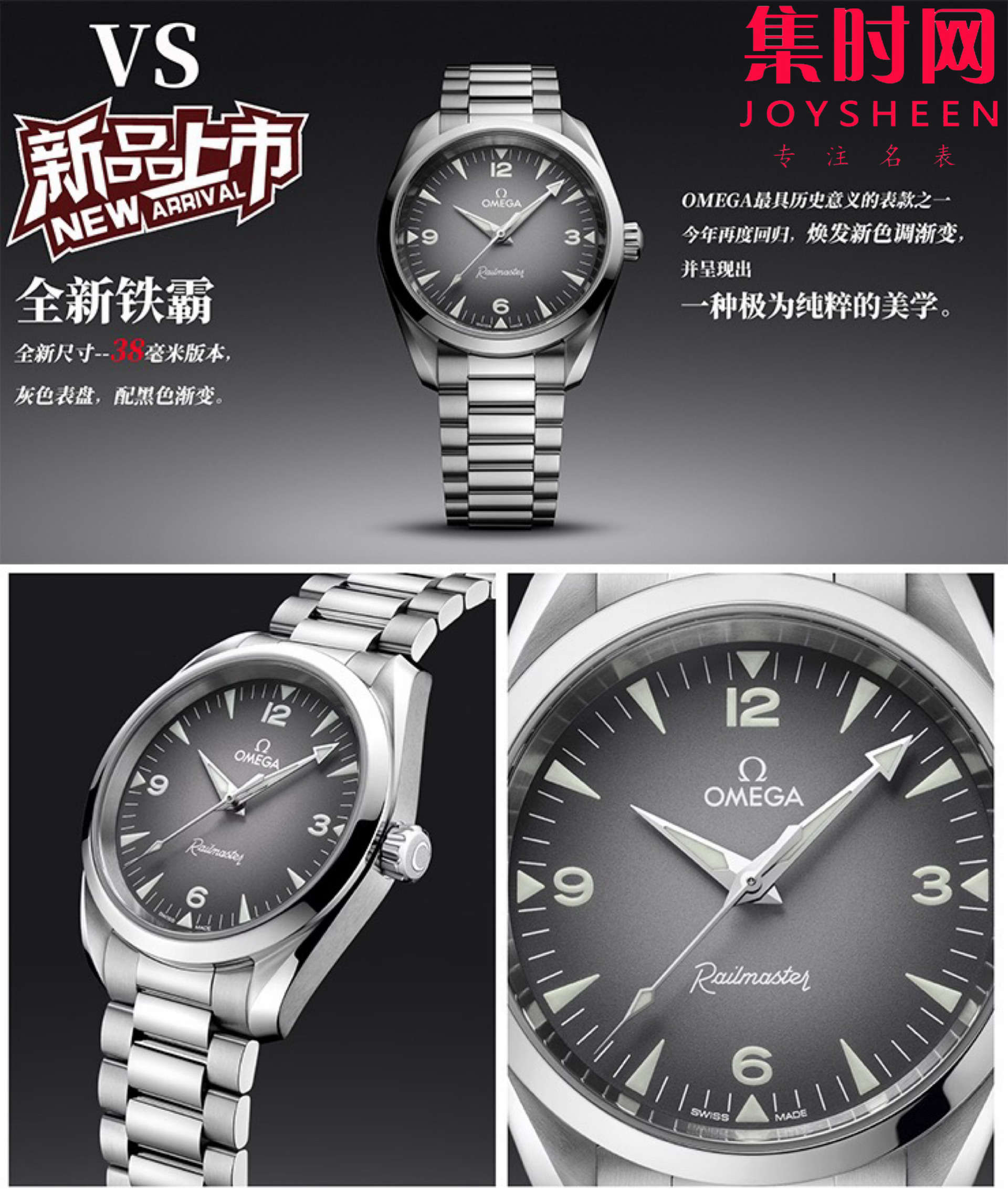 新品 VS欧米茄海马系列 新款铁霸回归-具历史意义的表款之一 渐变灰 男士腕表 表径38mm 全新开模尺寸,搭载VS定制Cal.8806稳定一体自动上链机械机芯,灰色渐变表盘,灰色型格,316L精钢表壳表带 防刮蓝宝石水晶镜面 低调高雅,是俘获表迷一大元素。