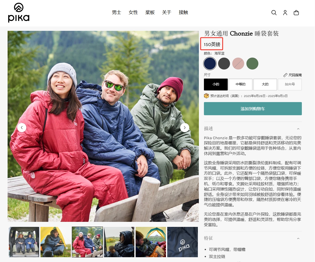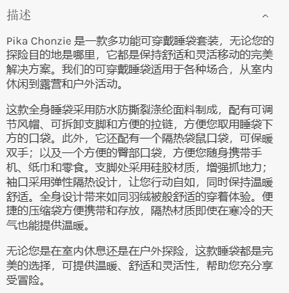 英国Pika Chonzie可穿戴露营睡袋(男女款)(TBZG)