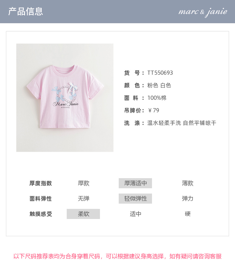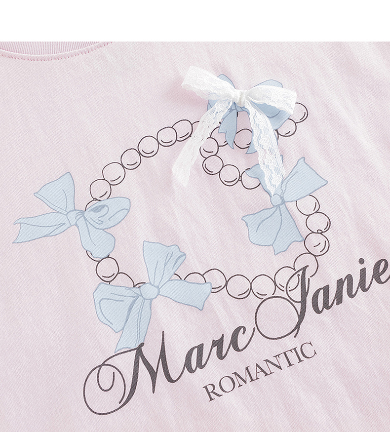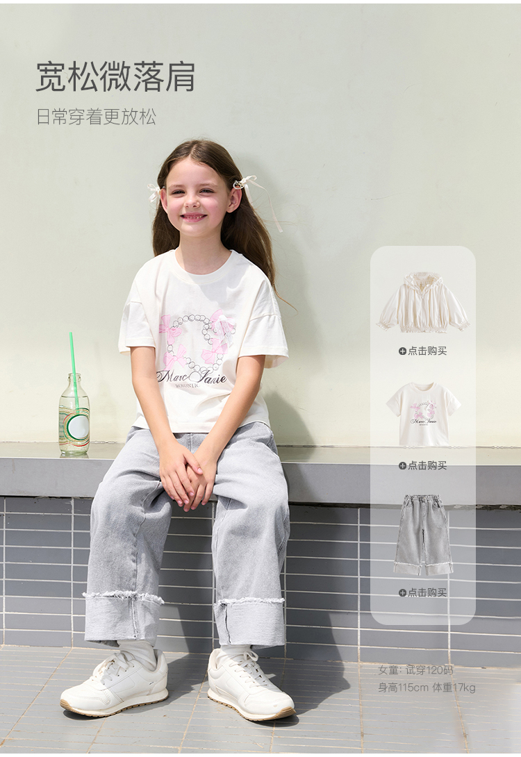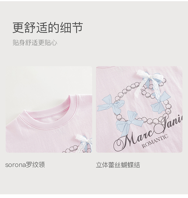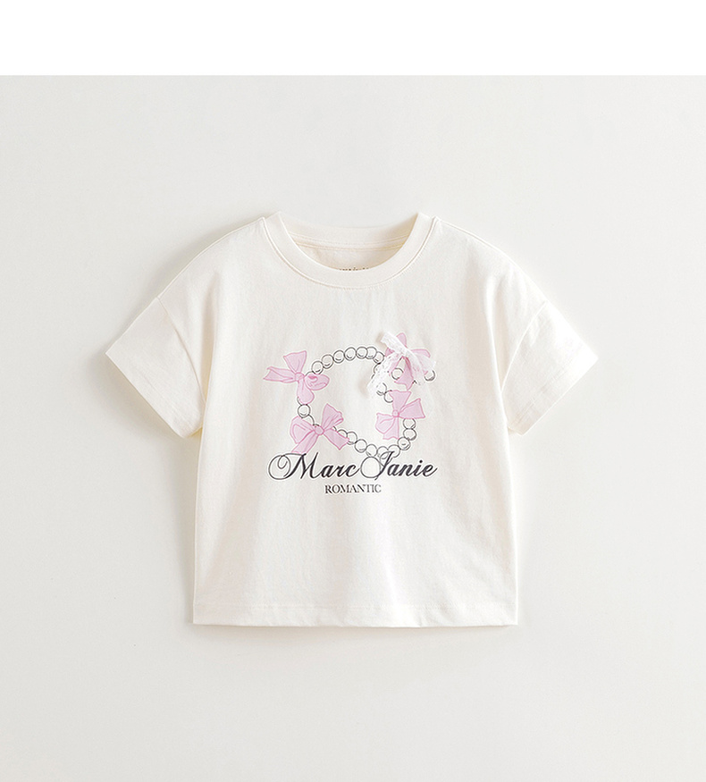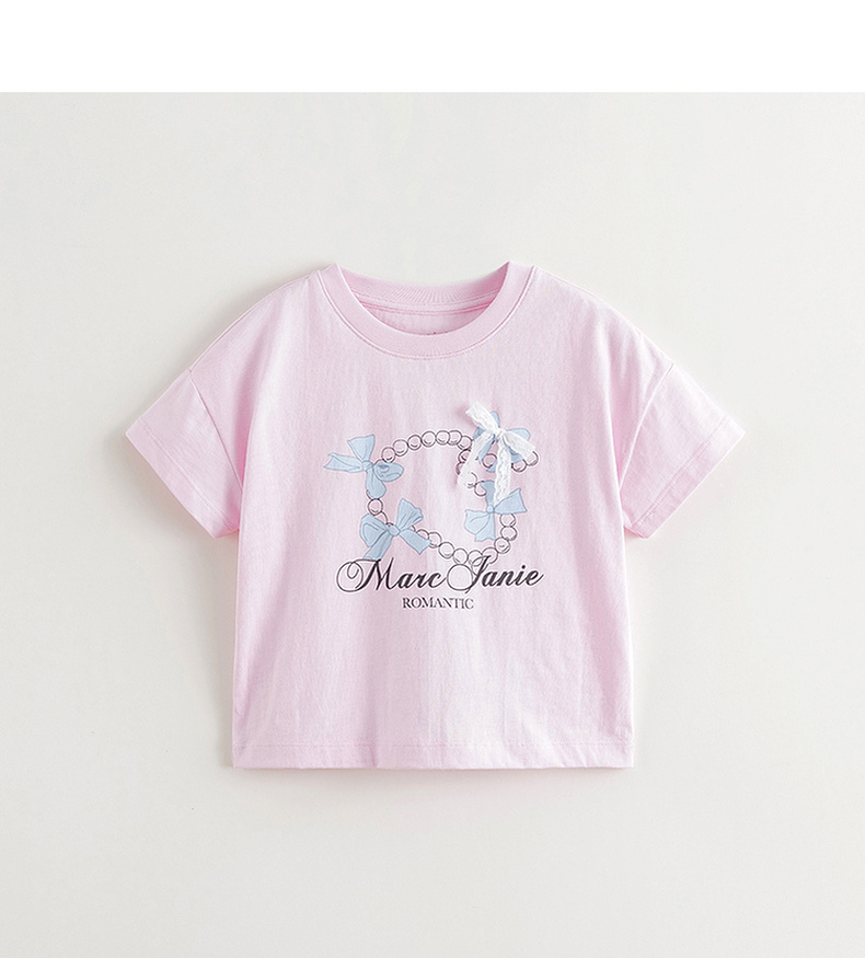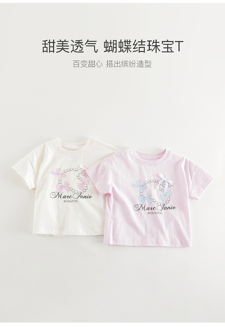 马克珍妮女童立体蝴蝶结短袖T恤 儿童上衣2025年夏装新款550693