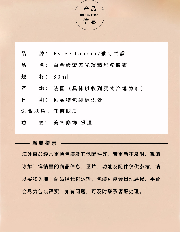 雅诗兰黛白金粉霜 奢润持光遮瑕细腻保湿底妆(CDF)