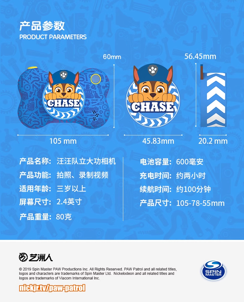 汪汪队儿童照相机玩具可拍照可打印高清录像数码拍立得男女孩礼物