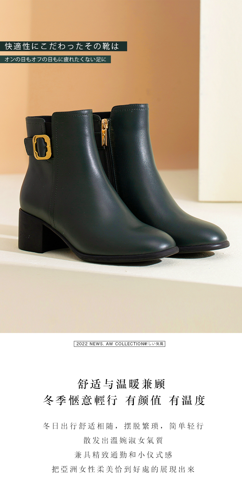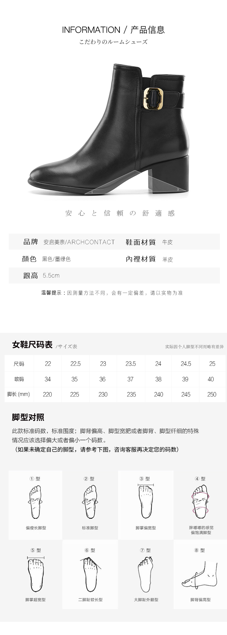 ARCHCONTACT安启美奈尖头扣带舒适女靴