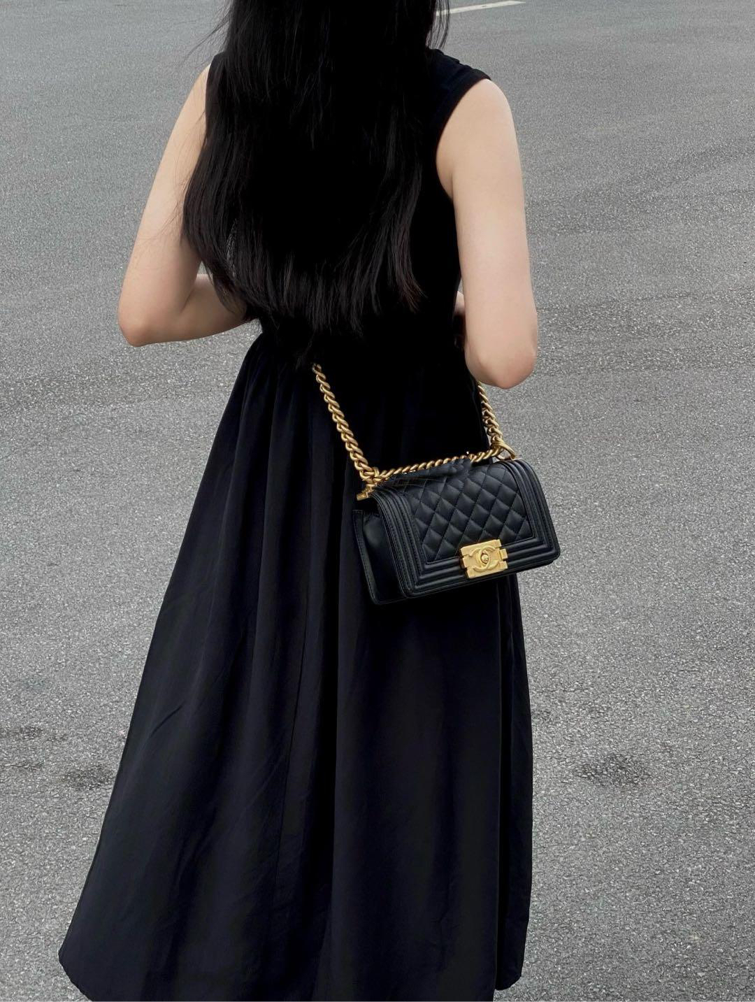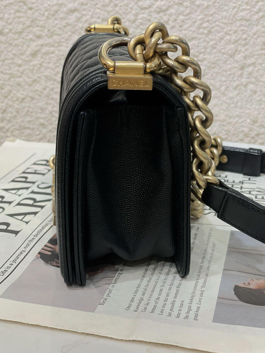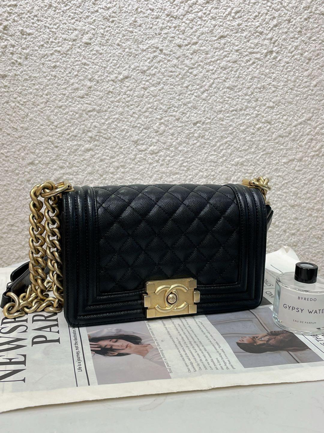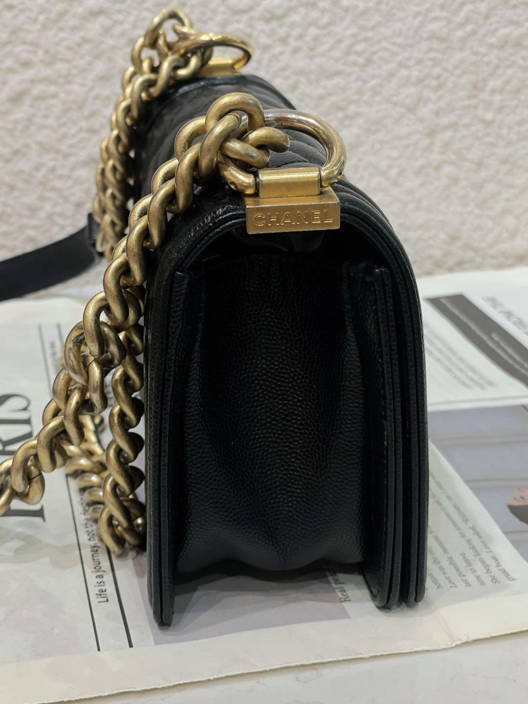 正品二手 CHANEL Leboy 小号 黑金 荔枝纹牛皮 斜挎包🍪97新 20×13 芯片款 配件:防尘袋。率真个性利落