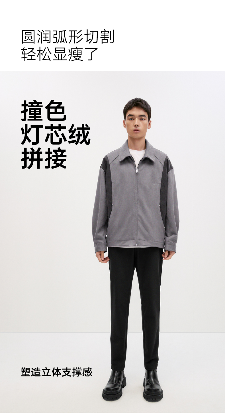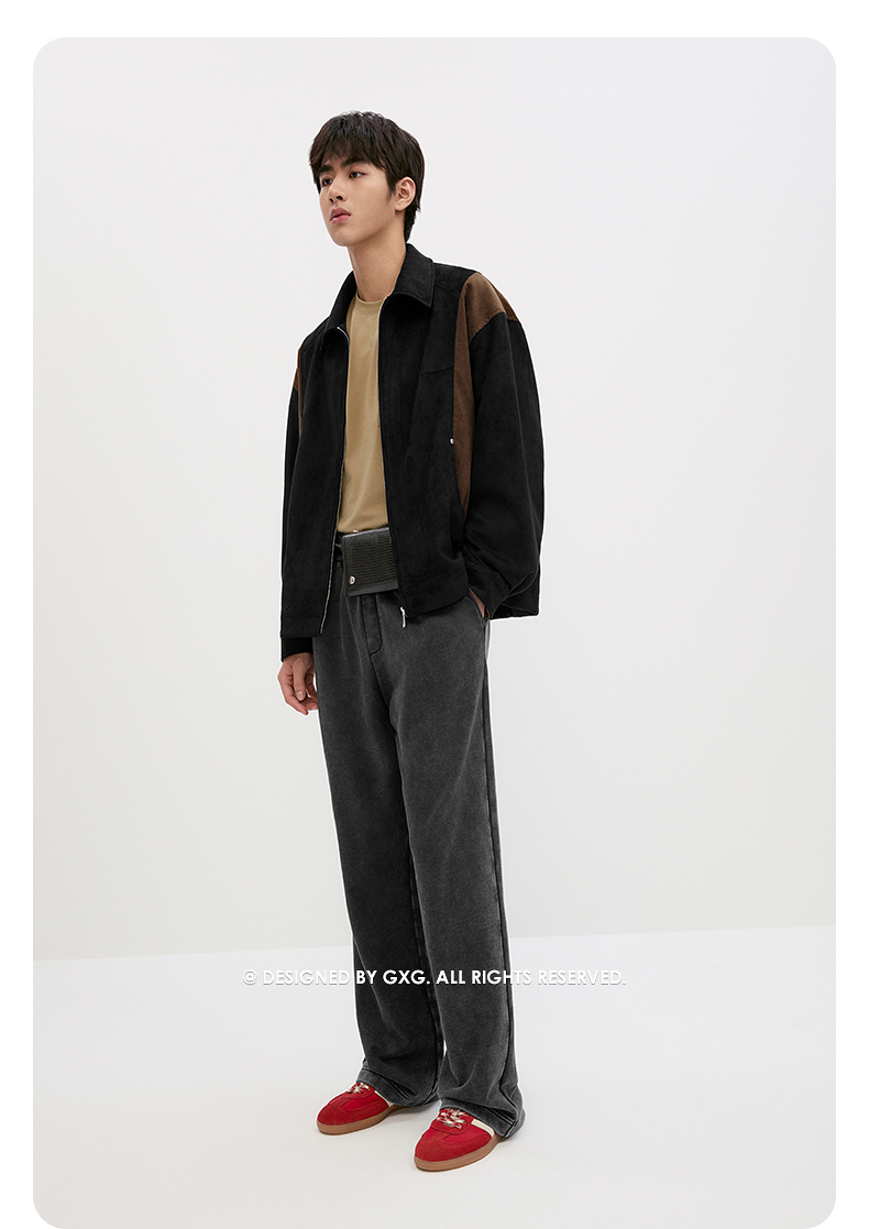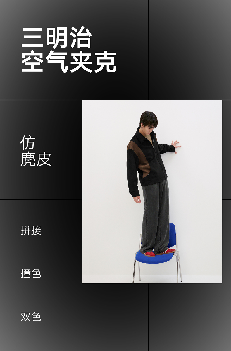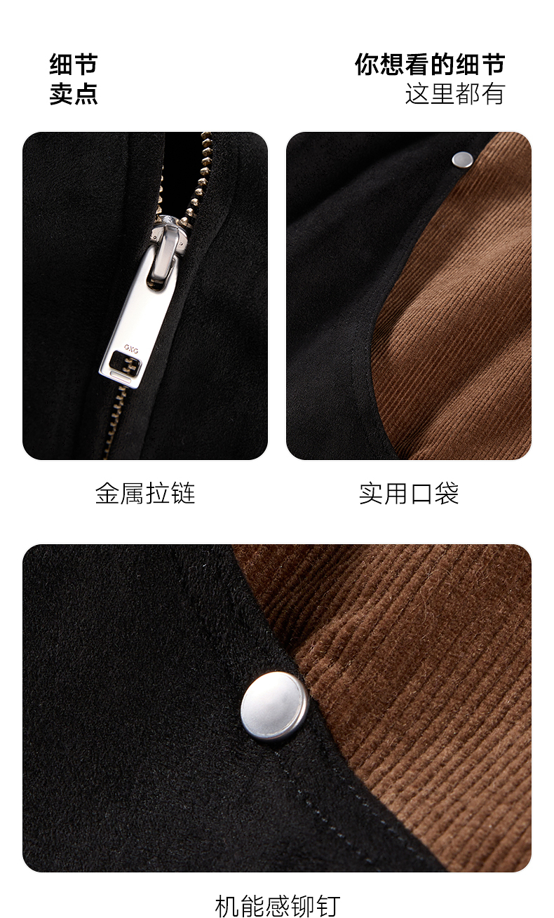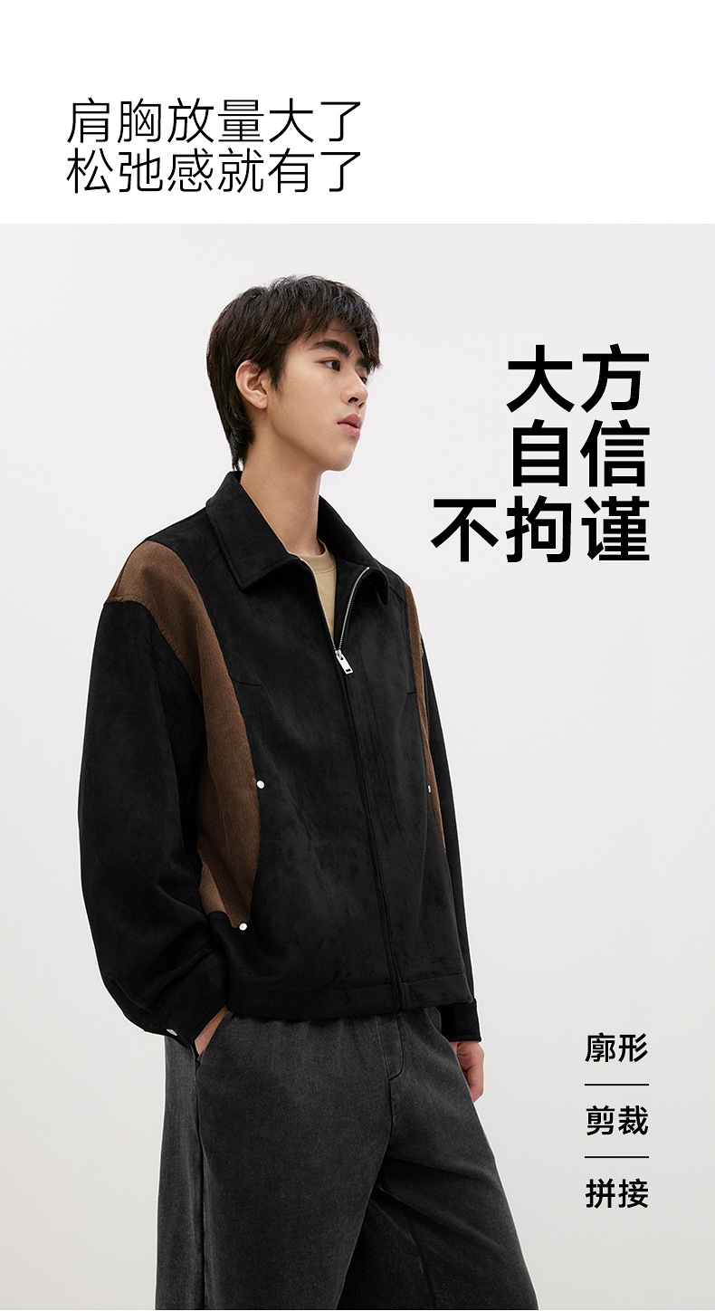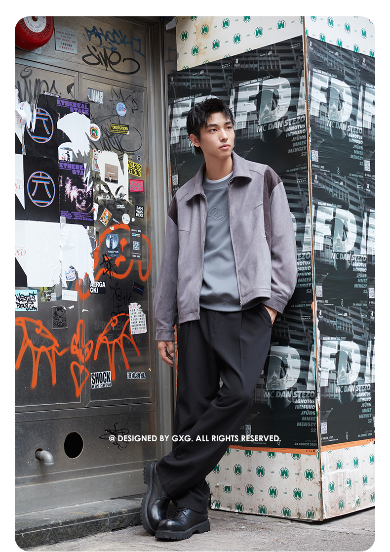 GXG男装 空气层仿麂皮休闲夹克男异材质拼接时尚外套 24秋季热卖