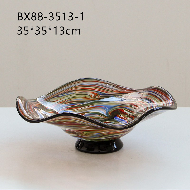 北欧创意轻奢渐变条纹琉璃果盘现代售楼部客厅茶几餐厅高级干果盘