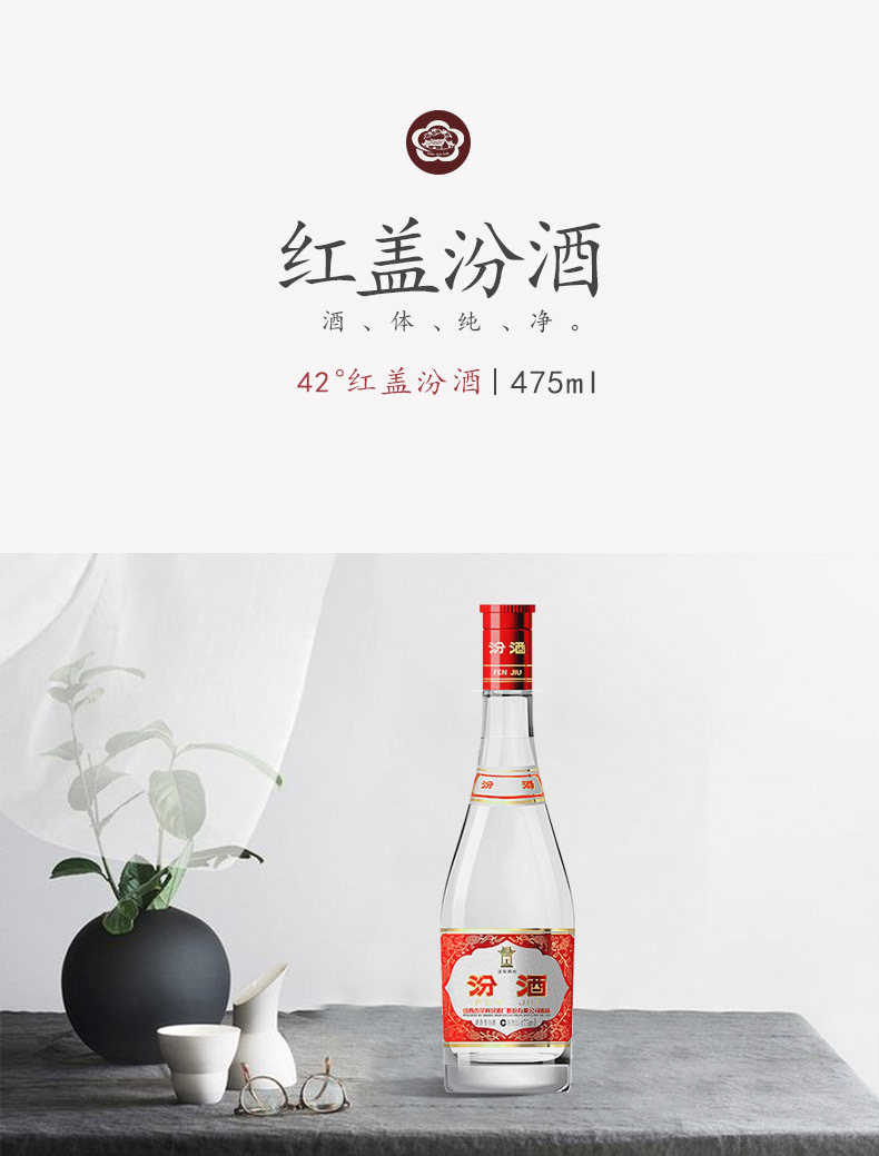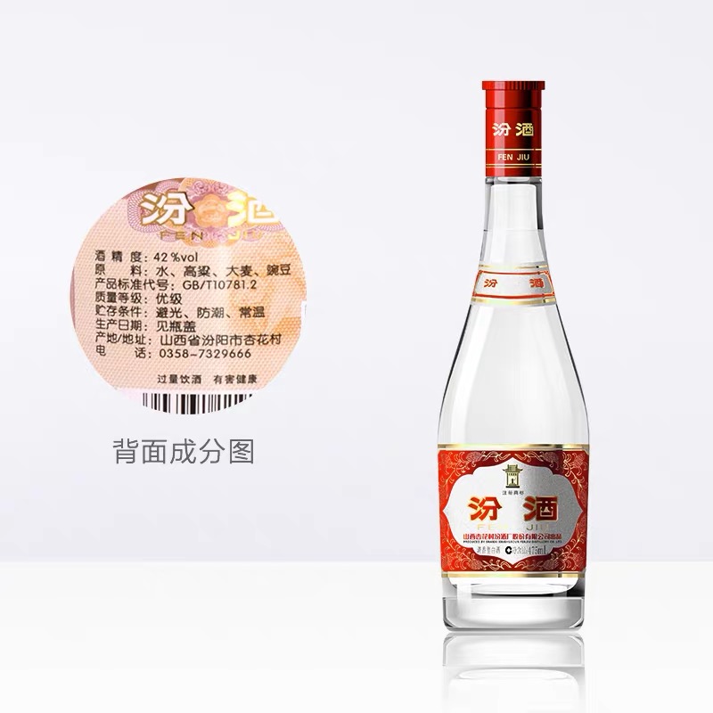 【实体商超版非电商版】汾酒 12瓶红盖玻汾 口粮酒 清香型白酒 42度 475mL 12瓶 整箱装