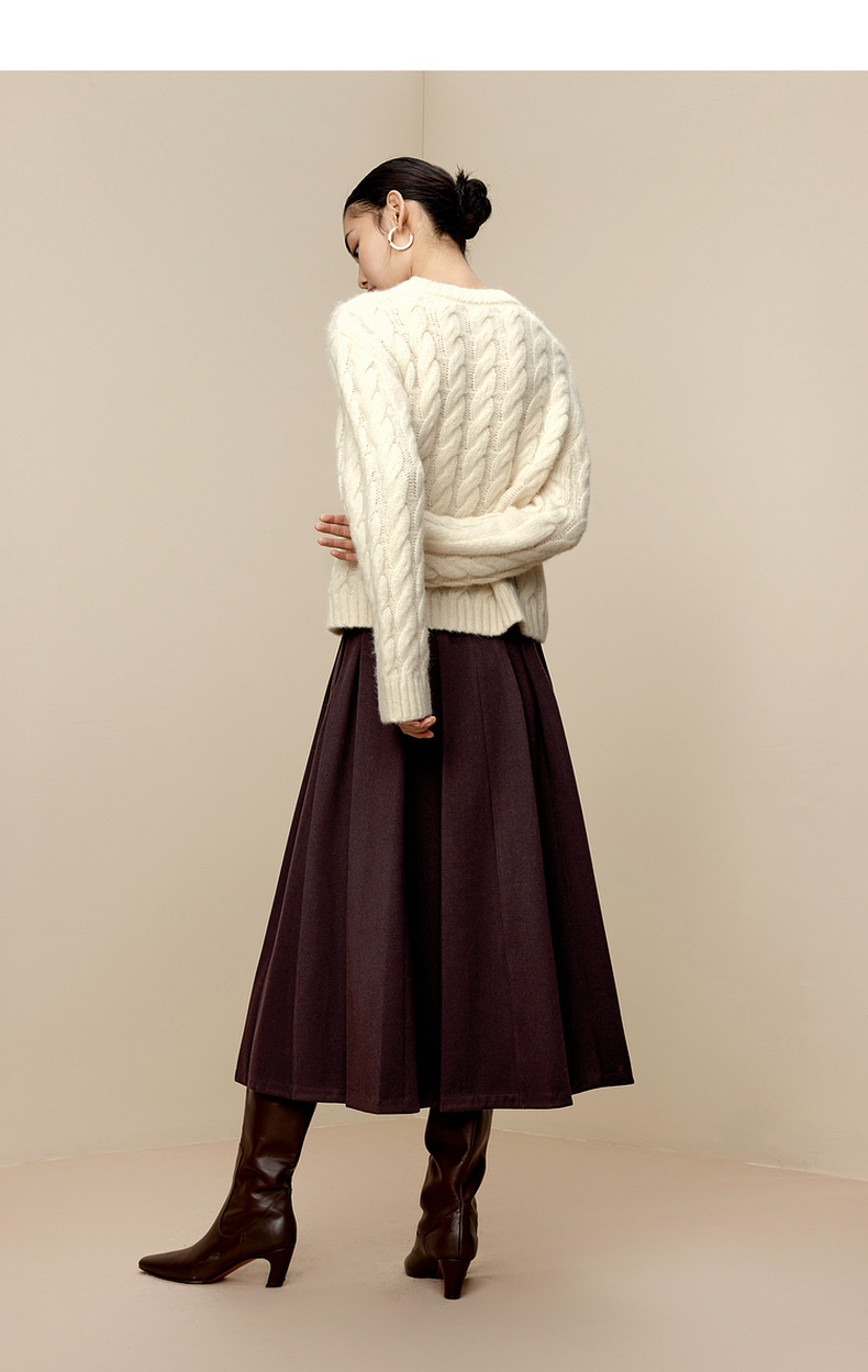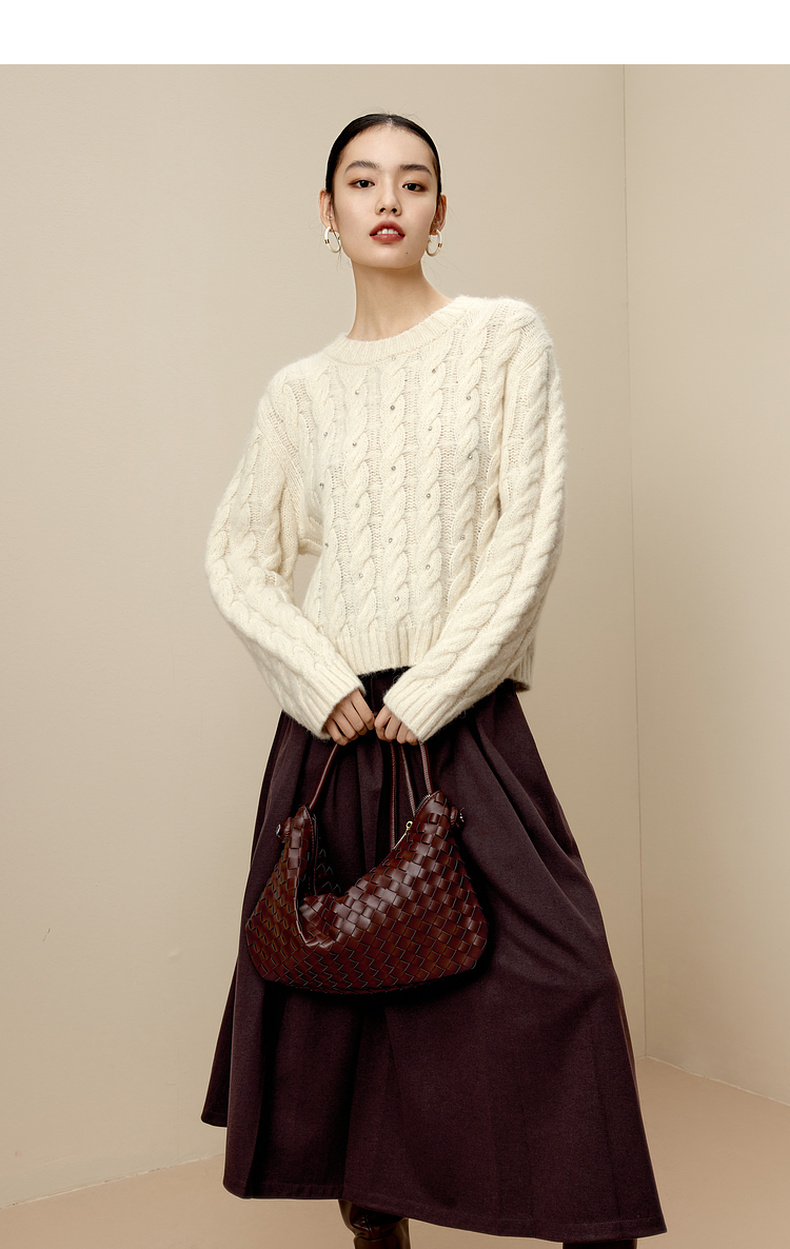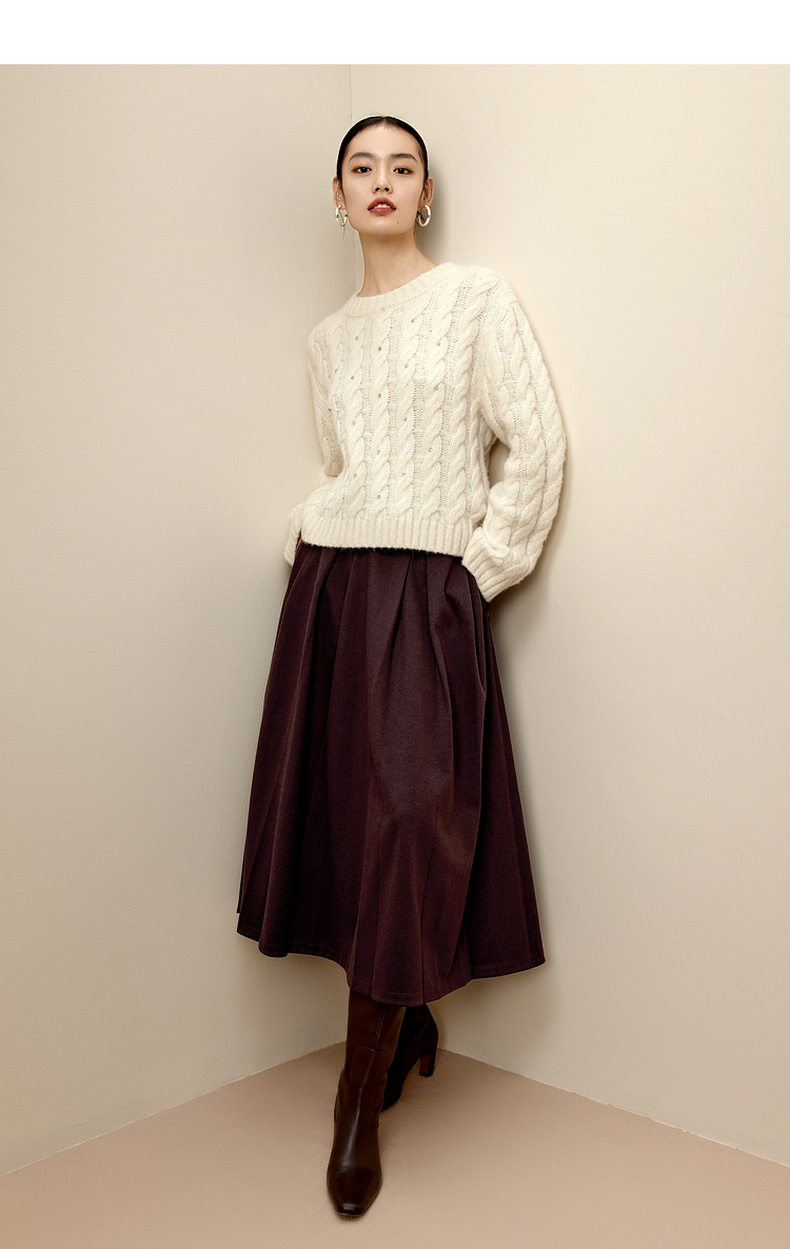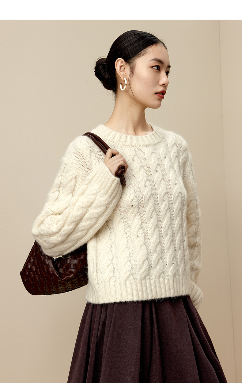 【严选】伊芙丽冬圆领大绞花毛衣1EA933731
