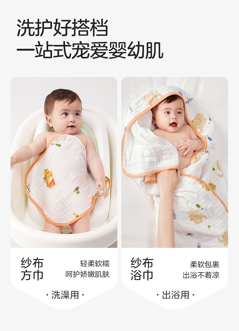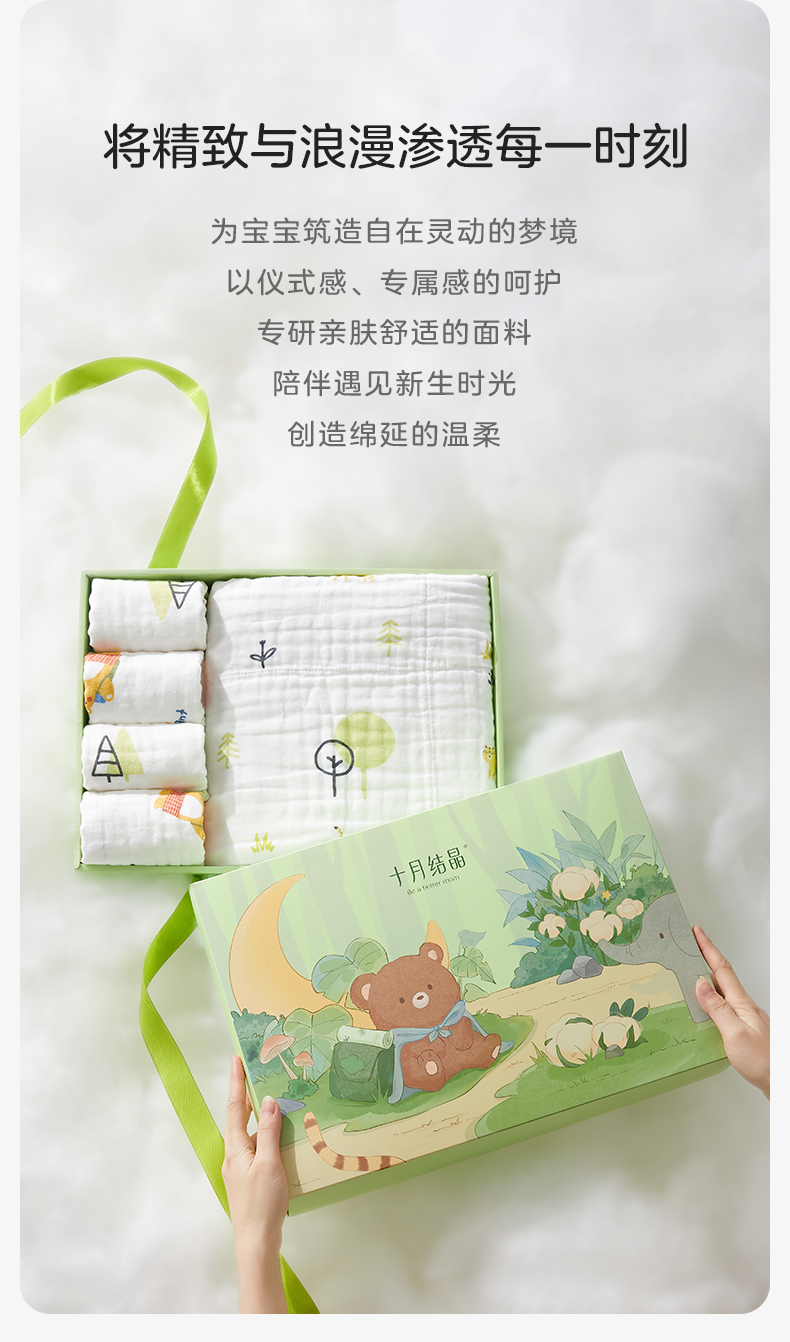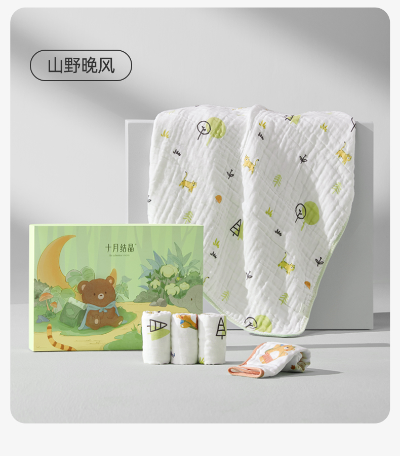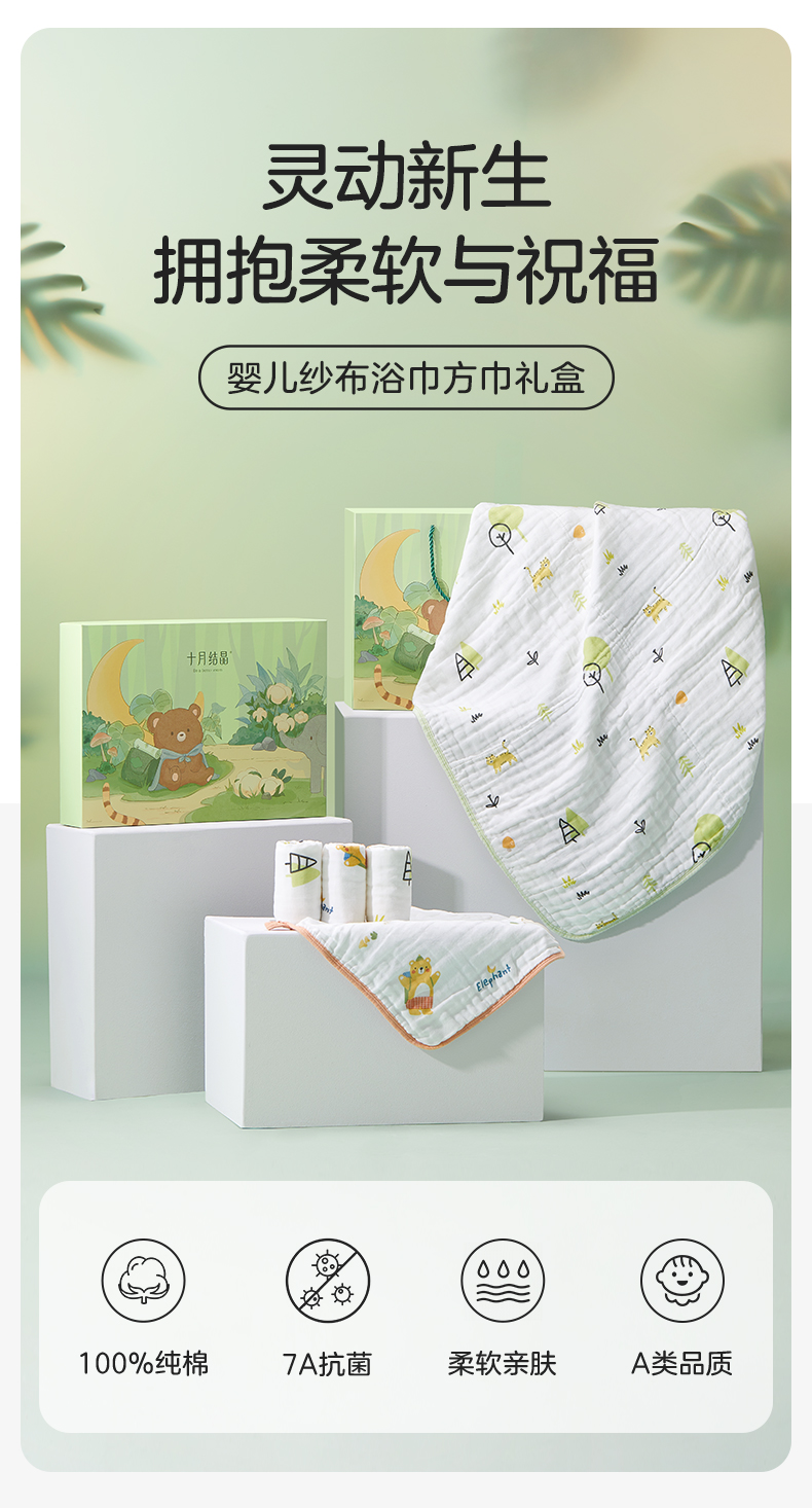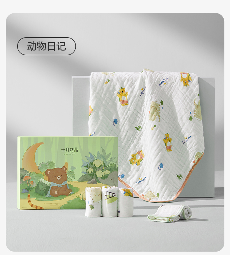 十月结晶婴儿纱布浴巾礼盒纯棉儿童宝宝浴巾洗澡盖毯浴巾+方巾4条