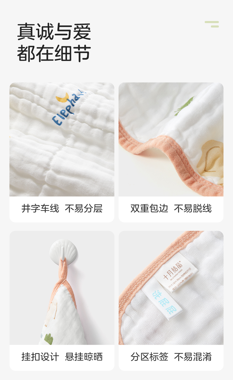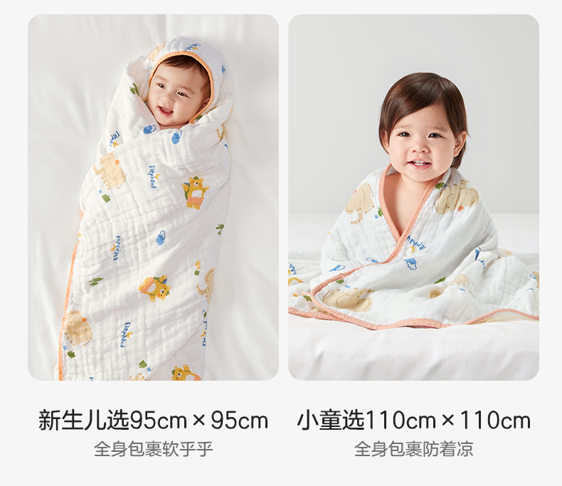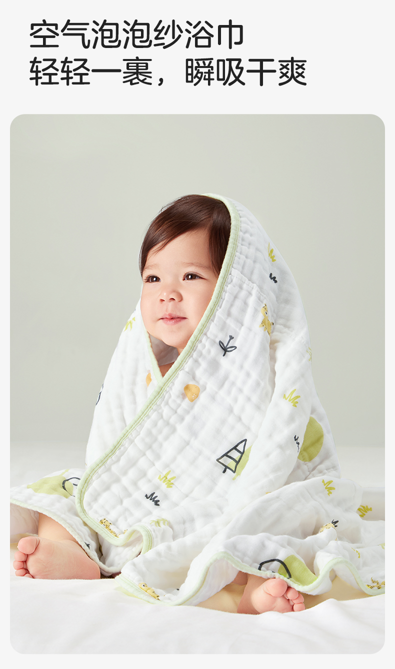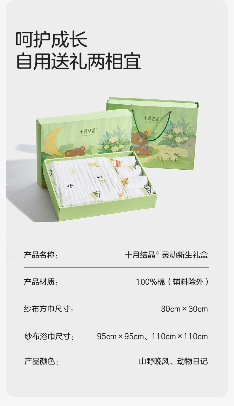 十月结晶婴儿纱布浴巾礼盒纯棉儿童宝宝浴巾洗澡盖毯浴巾+方巾4条