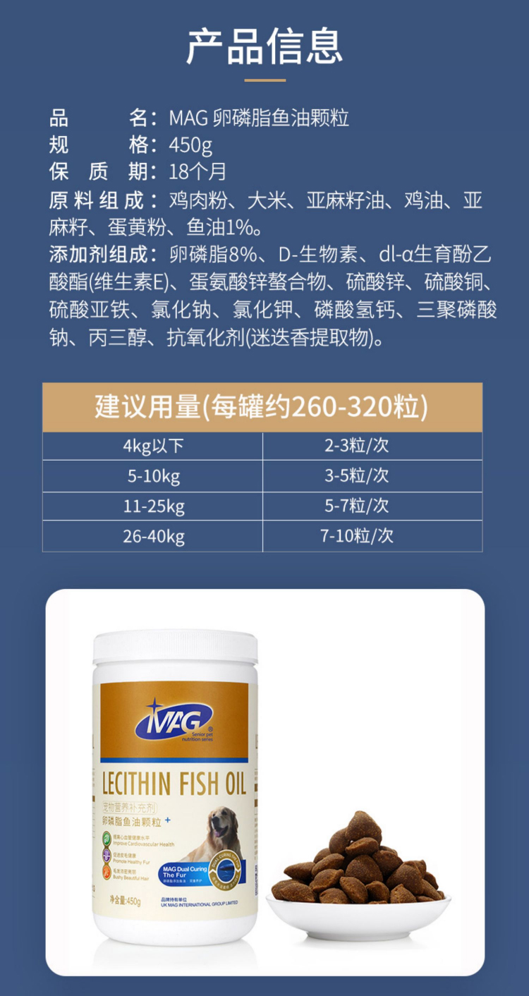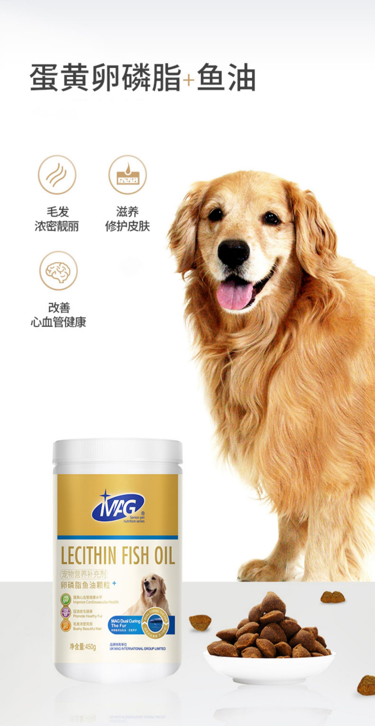 MAG狗狗卵磷脂鱼油颗粒犬滋养毛发养护皮毛泰迪金毛450g