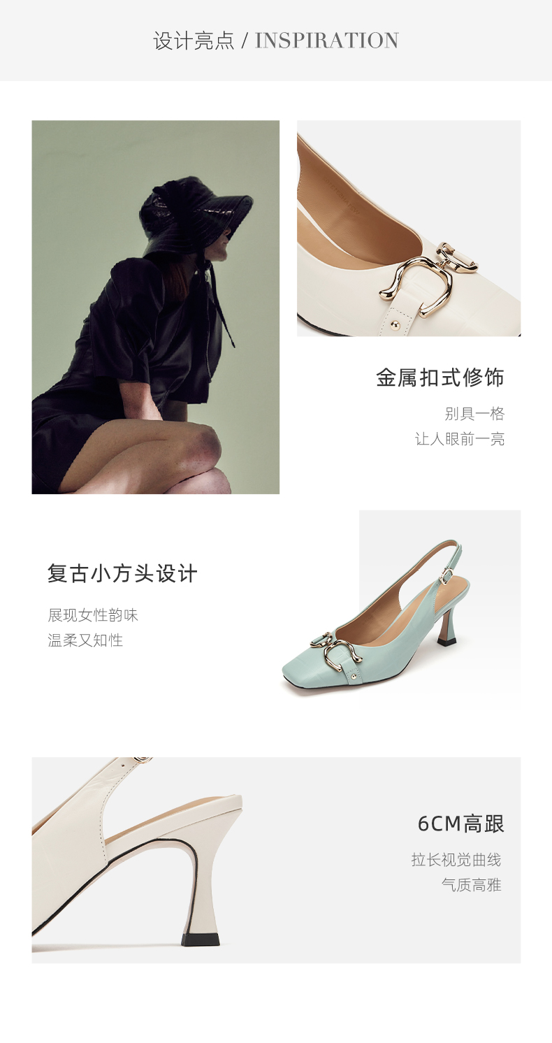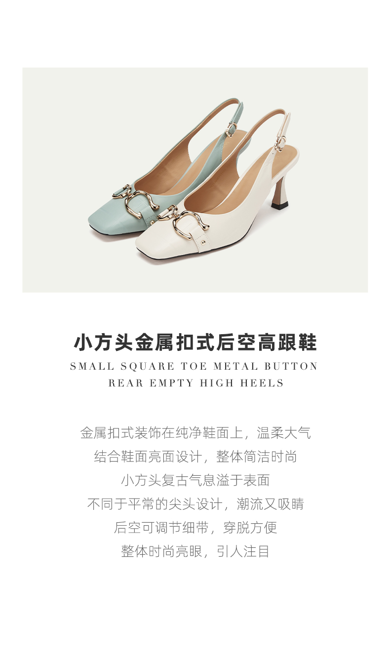 westory2023秋季新款粗跟中跟方头时尚百搭搭扣单鞋S23CE72031