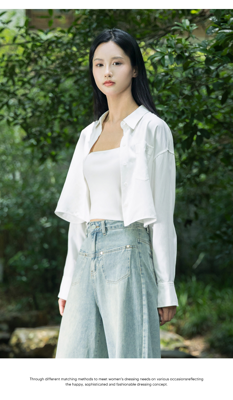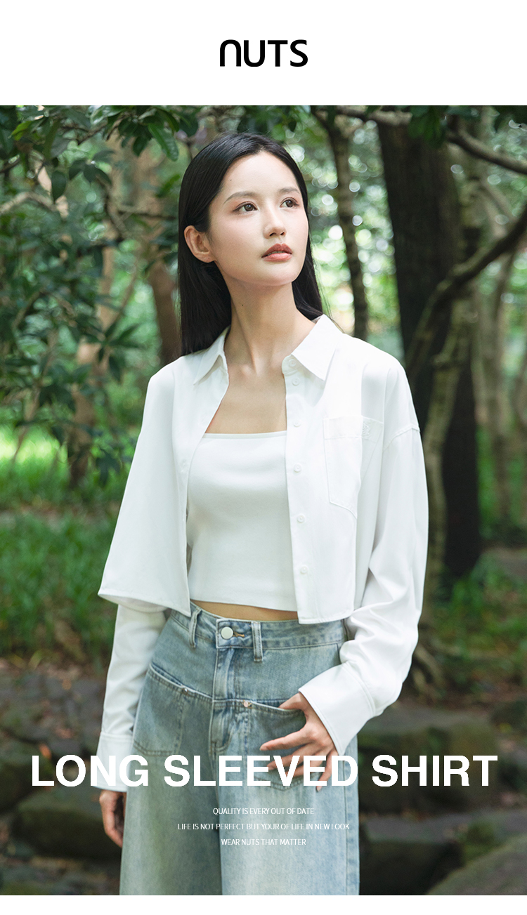 NUTS秋季新品女装翻领长袖短上衣气质百搭衬衫女4310101A1