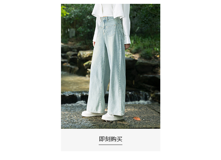 oldcolour蓝色牛仔裤夏季新款高腰显瘦时尚开叉微喇裤女P21113176