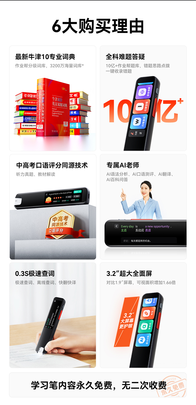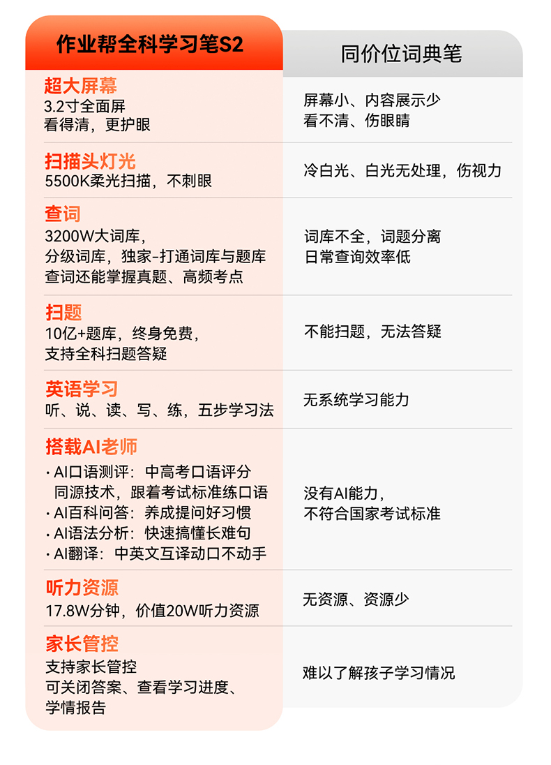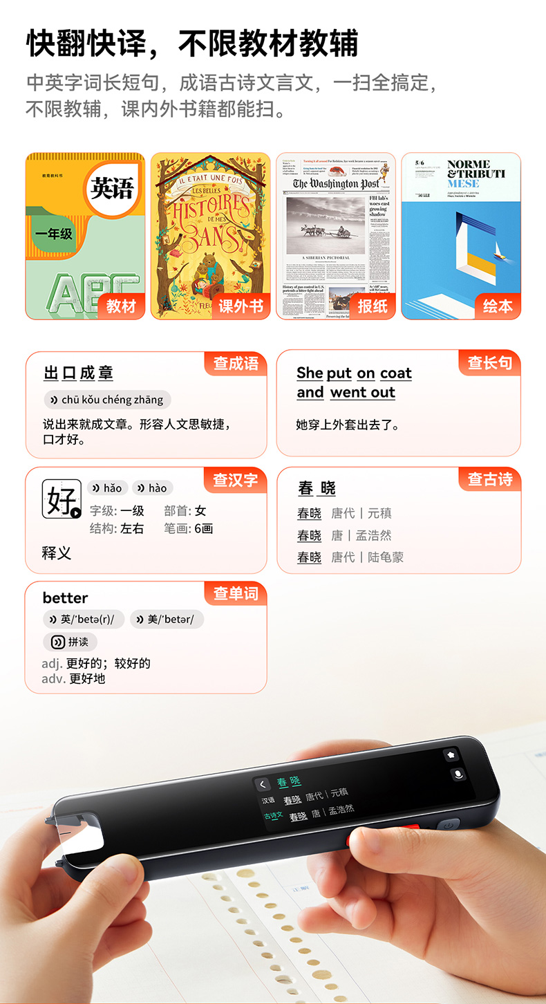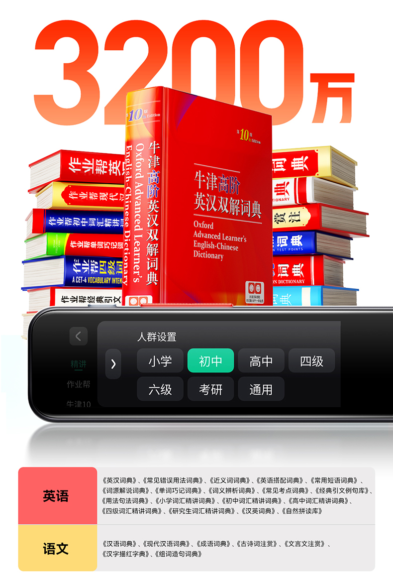 【性价比超高!全科学习笔S2pro】 小初高9门学科全有作业帮全科学习笔数理化英语全科多功能扫描笔喵喵电子词典笔小初高通用