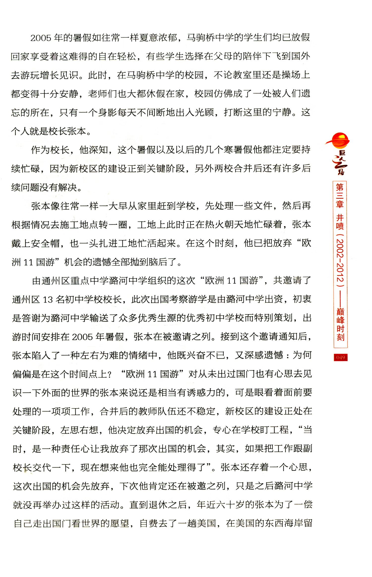 这一干又是十年。这十年是我人生的巅峰,也是第三个梦想实现的时候。这十年马驹桥中学由原来破旧不堪的平房校,迁入了高楼林立的现代化校园;这十年学校由原来的后进学校变为窗口学校……到现在马驹桥学校仍然位居通州区几十所学校的前列。