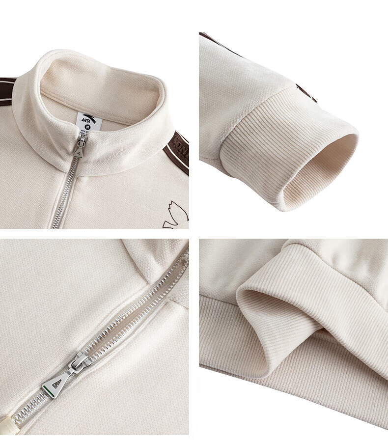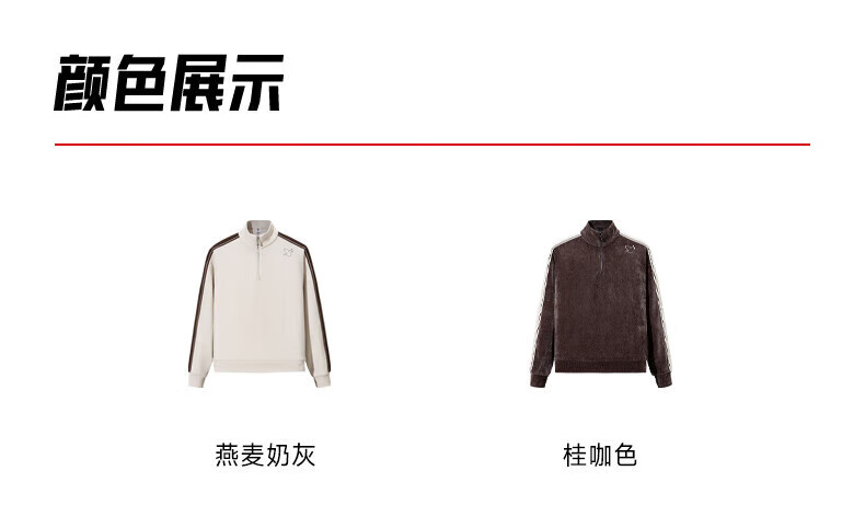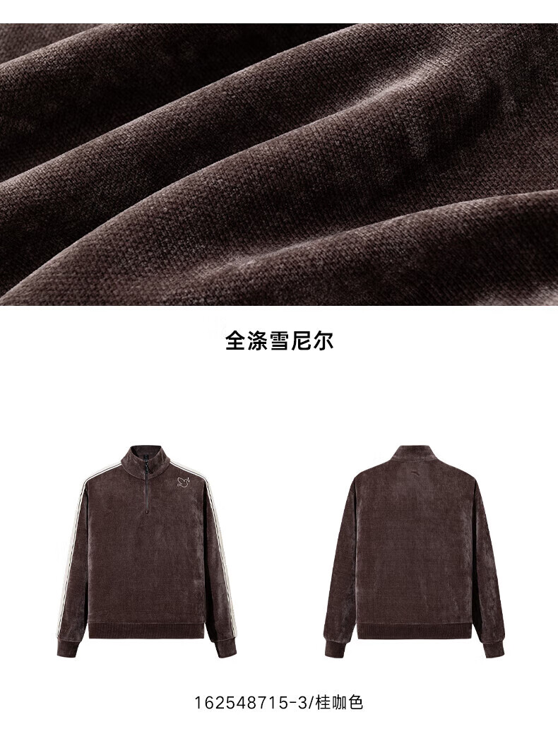 安踏(ANTA)ICONIC潮流信鸽半拉链卫衣女士雪尼尔加绒长袖新款162548715 桂咖色-3