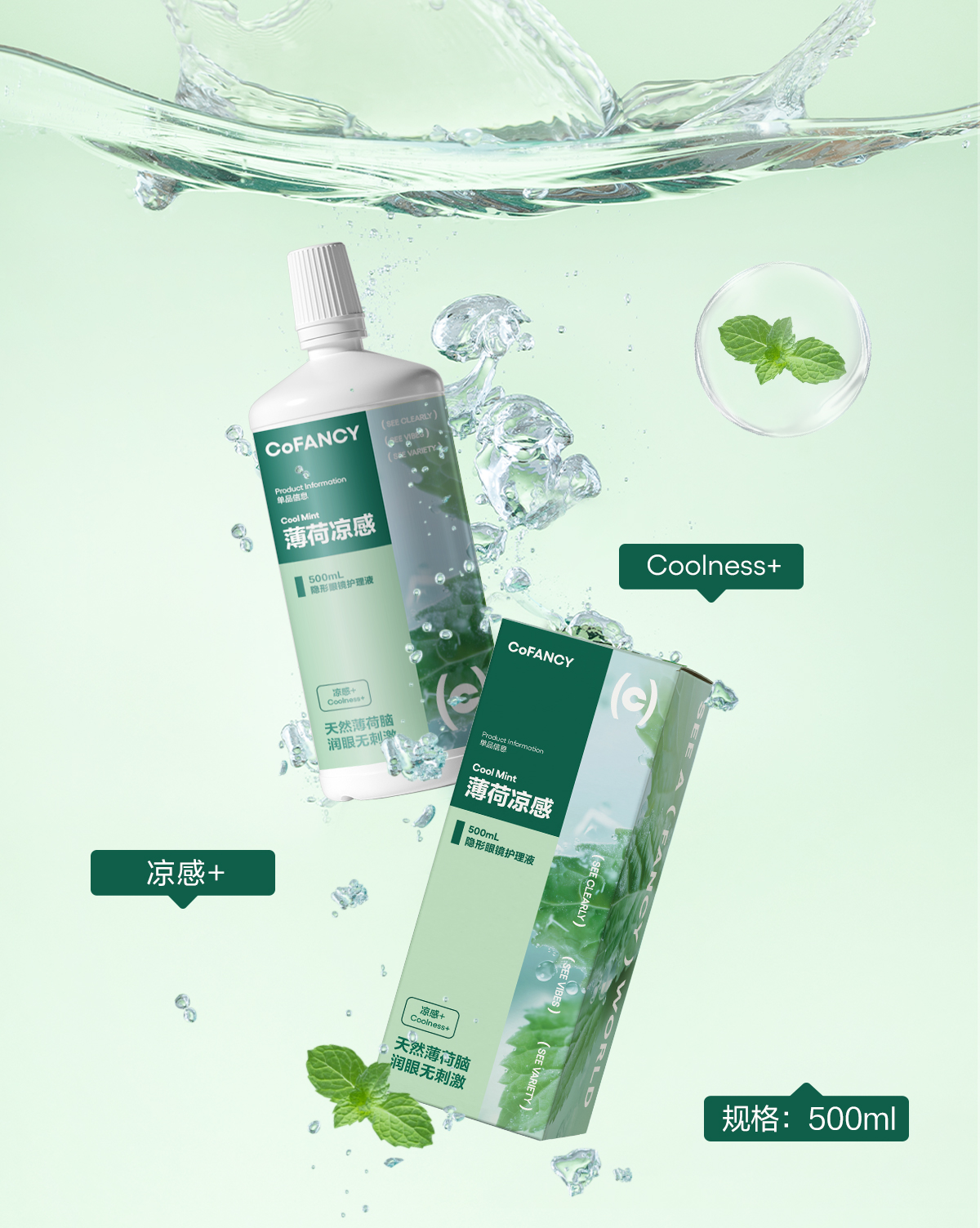 【新品上线】CoFANCY可糖隐形眼镜美瞳薄荷凉感多效护理液除蛋白500ml清洗液