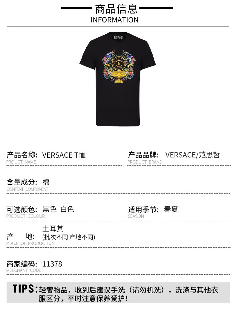 【超惠秒】VERSACE 男士太阳花LOGO图案百搭短袖T恤 11378