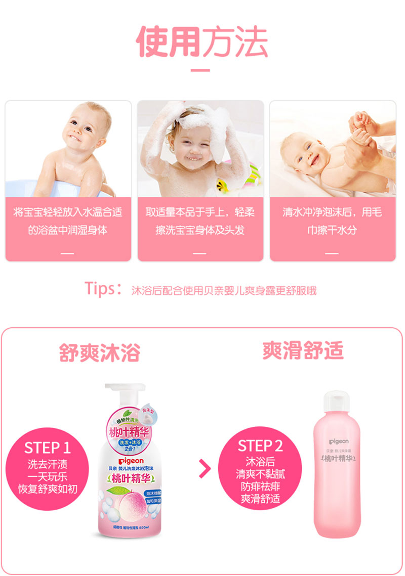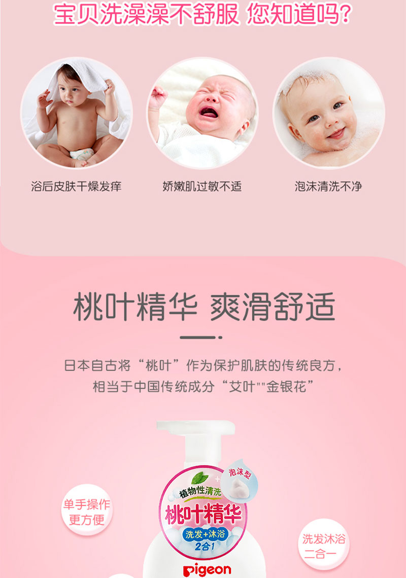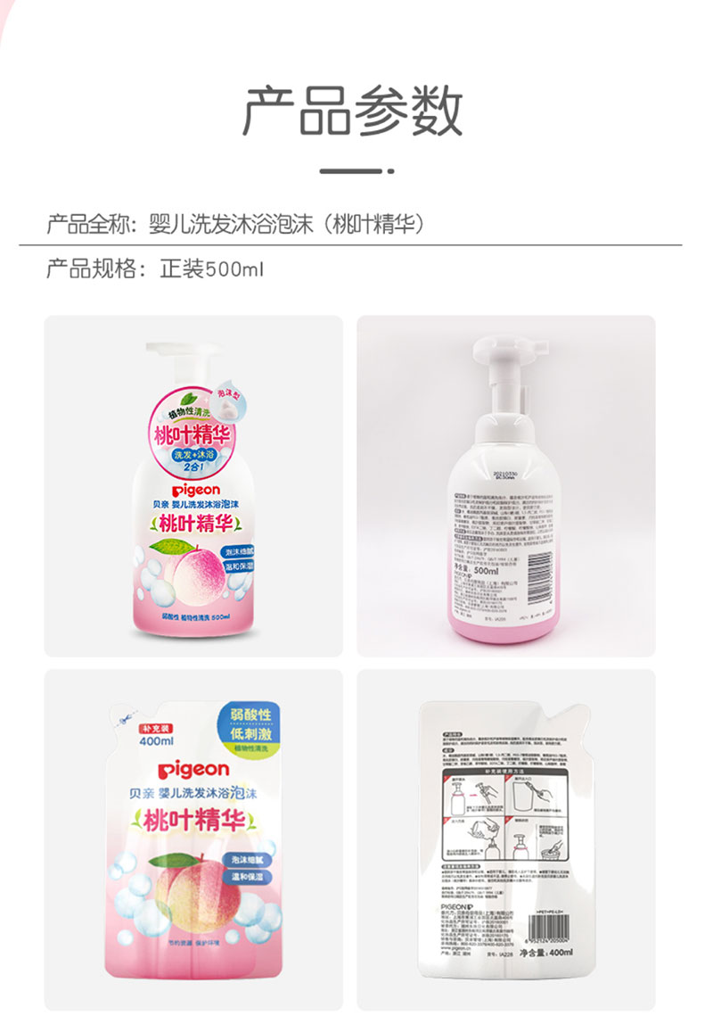 贝亲 婴儿洗发沐浴泡沫二合一沐浴露(桃叶精华)滋润保湿500ml 1m+