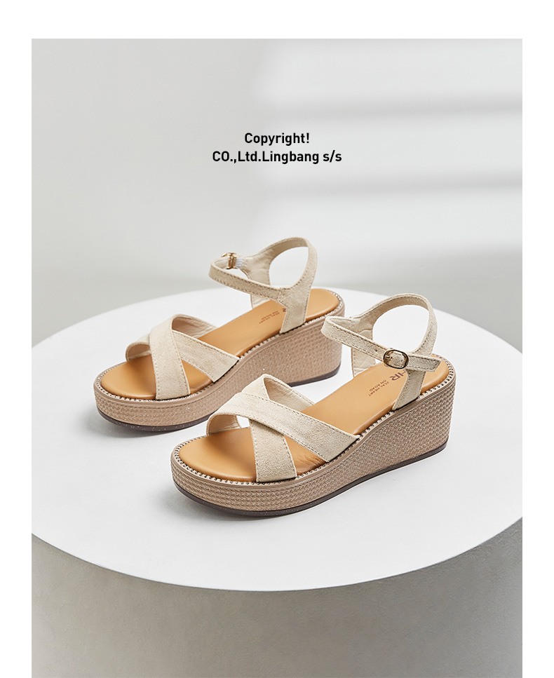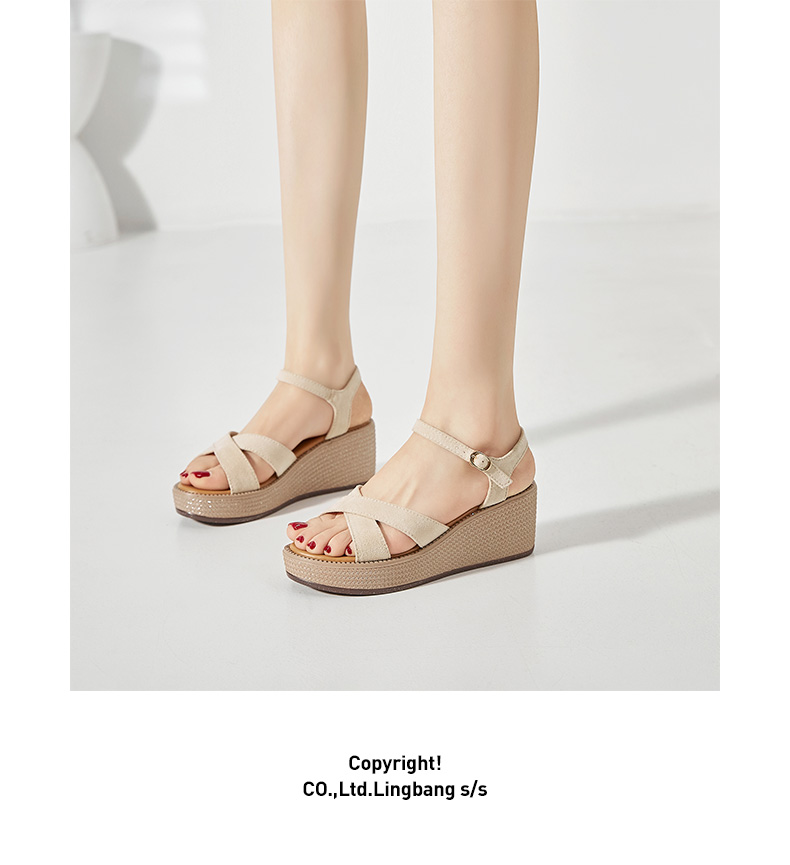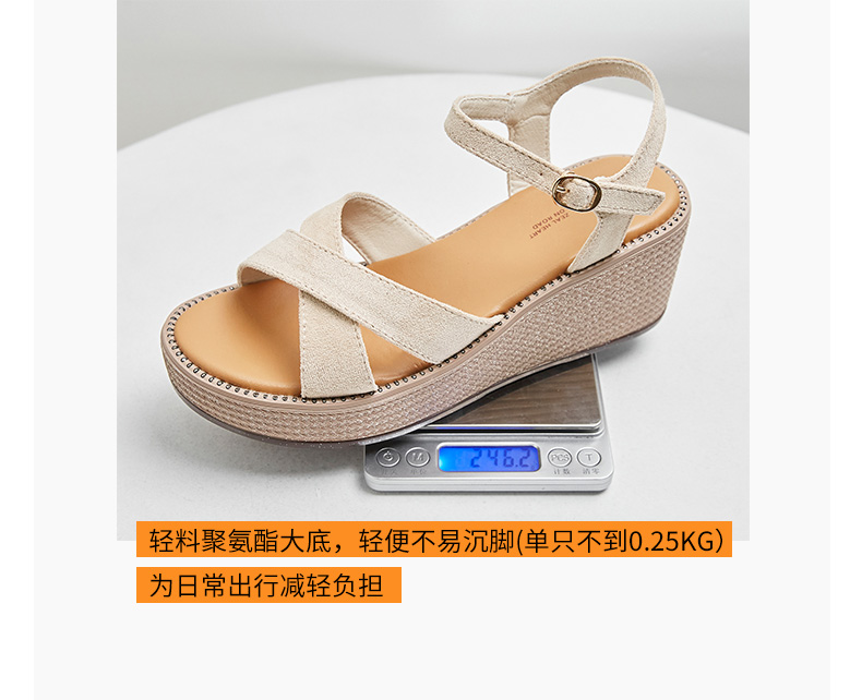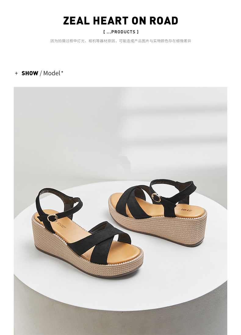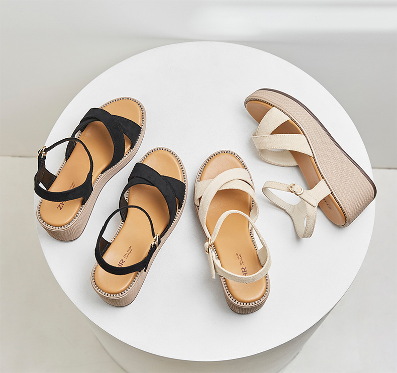 ZHR厚底凉鞋女2022年新款夏季百搭坡跟轻便复古一字带女鞋子