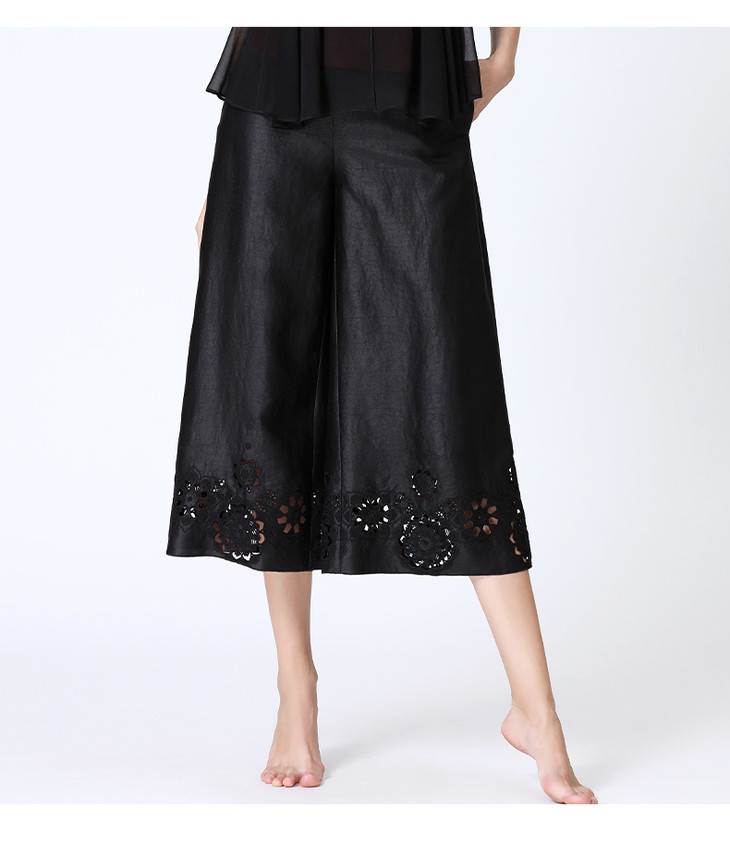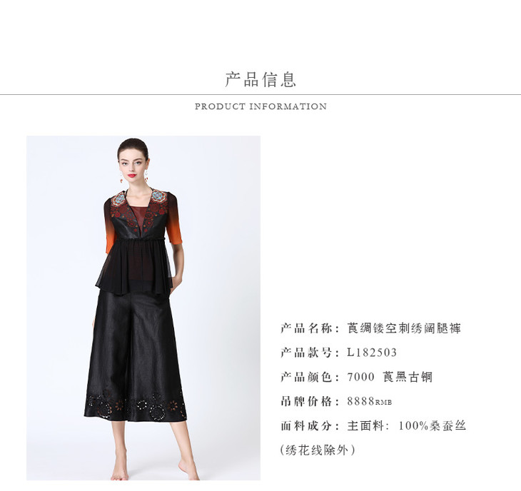 TANGY Collection天意莨绸镂空刺绣阔腿裤