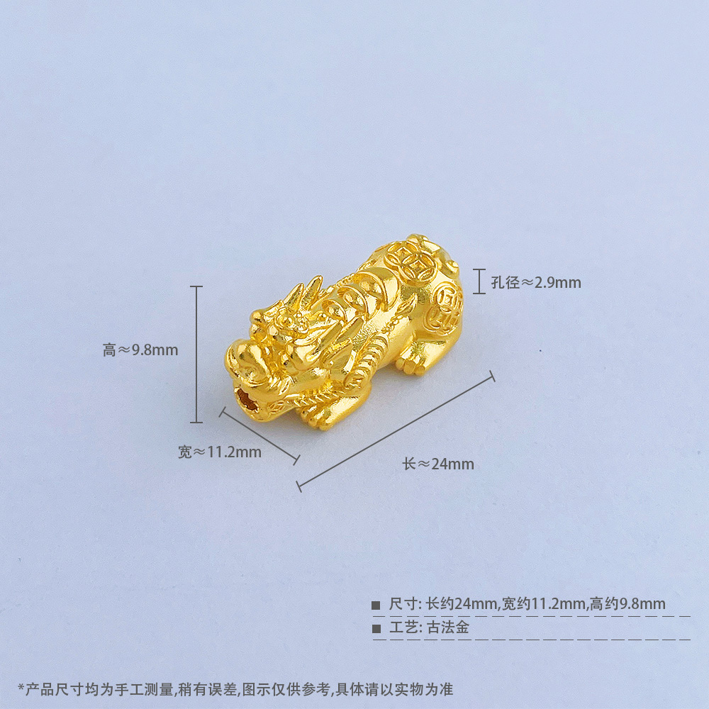 【限时7.5折】【定价黄金】足金999 #超轻 古法空心元宝招财纳福貔貅手串配件Diy吊坠手串配件(YQGFSC00190)预售产品下单后不退款不退货不换货不补差价