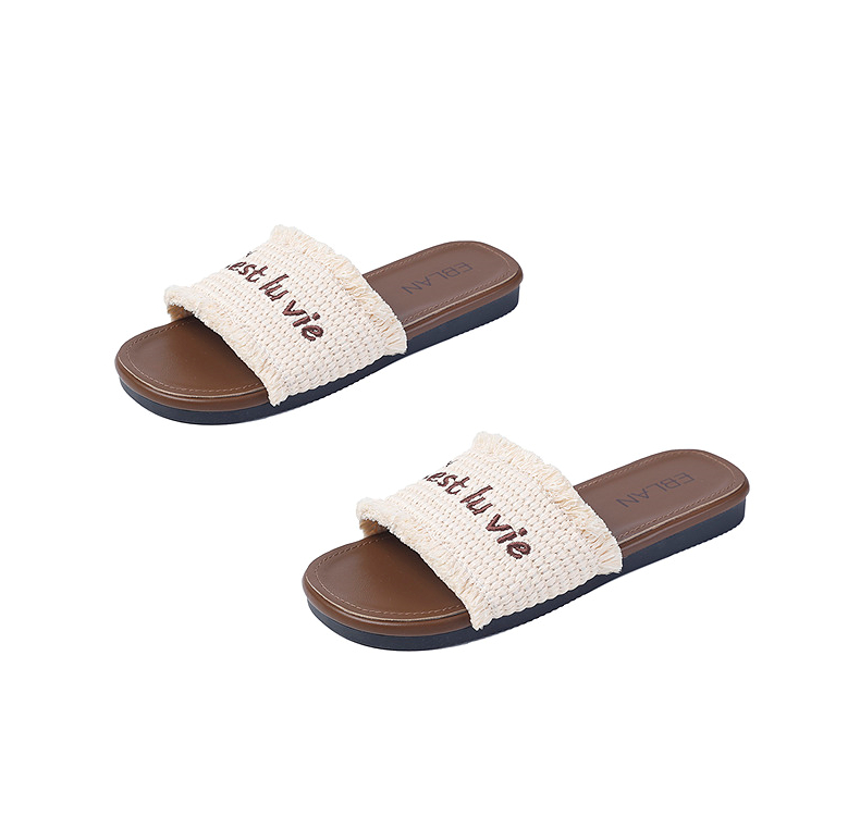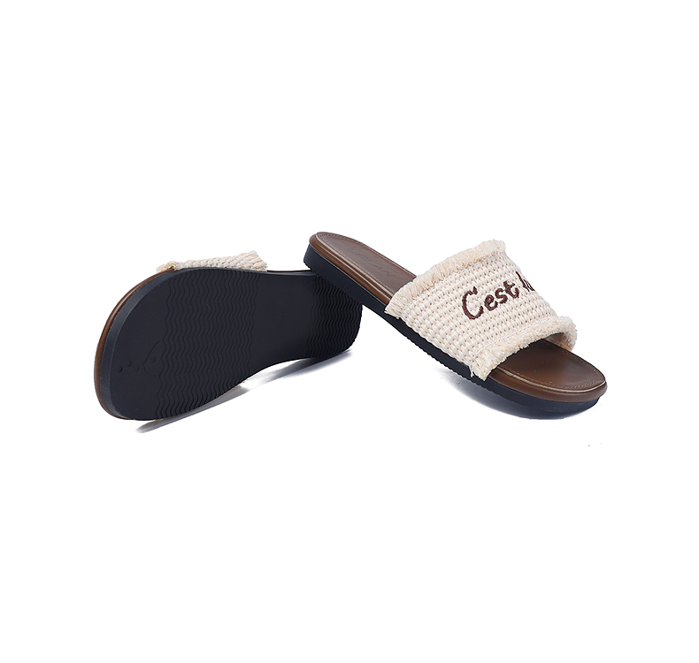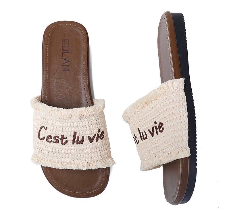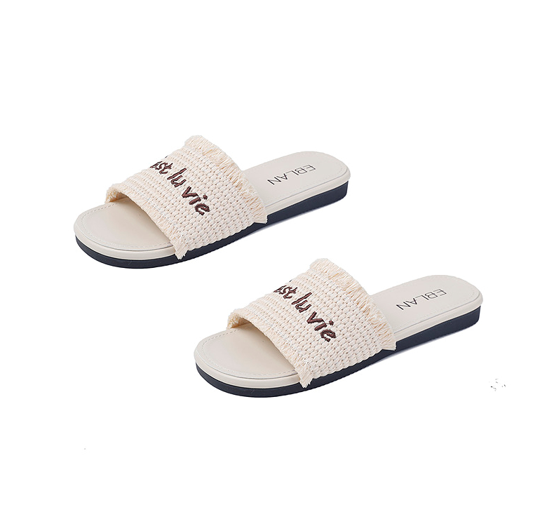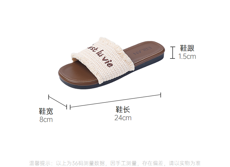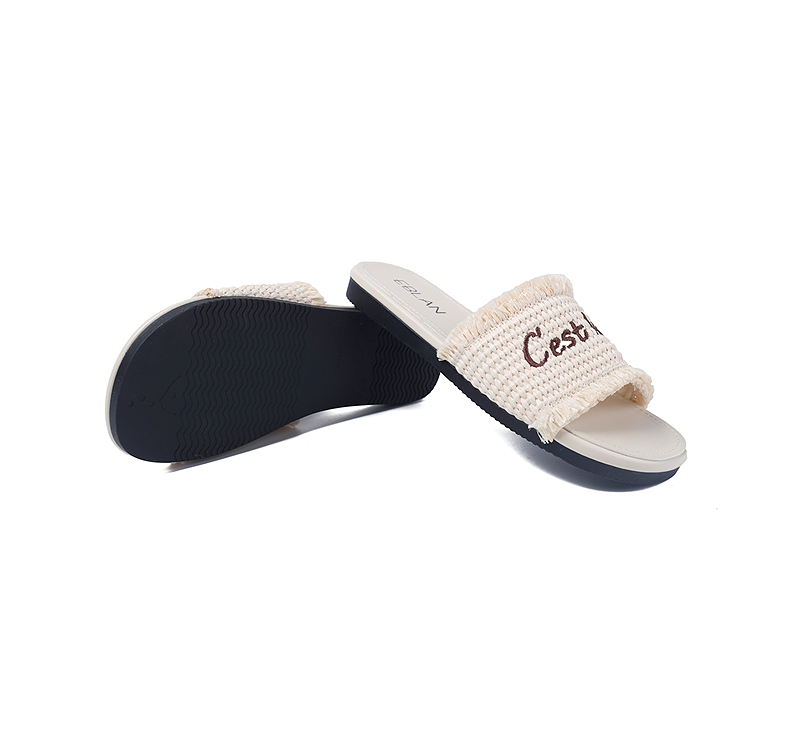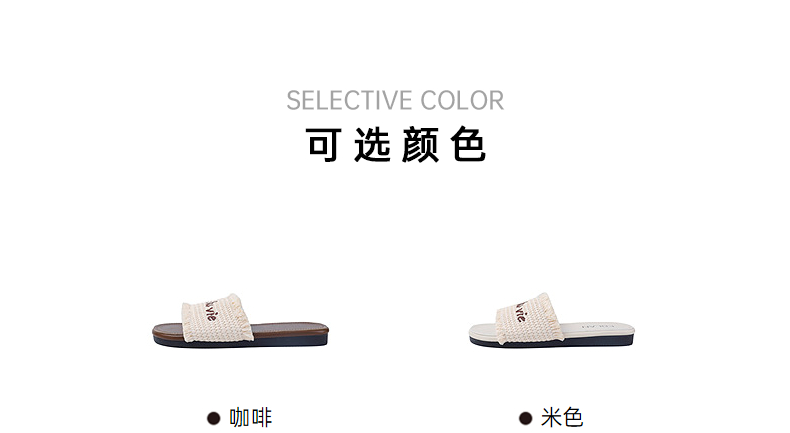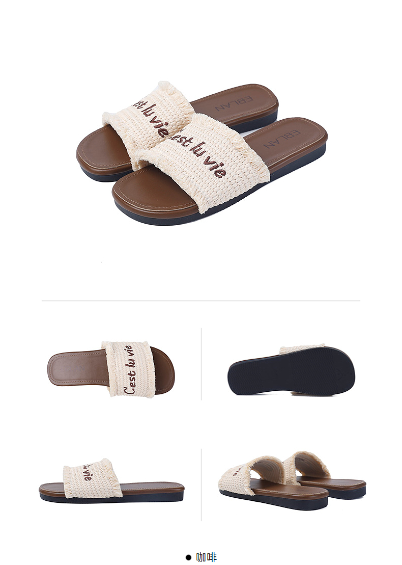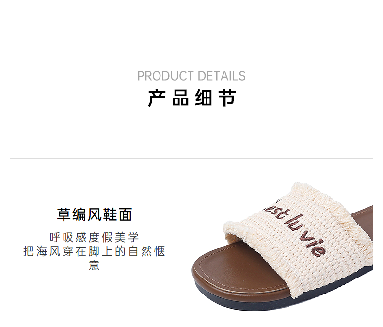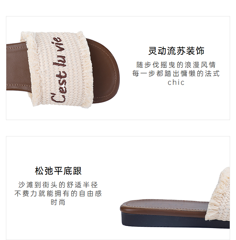 伊伴夏季度假美学草编鞋面休闲凉拖鞋B25313201