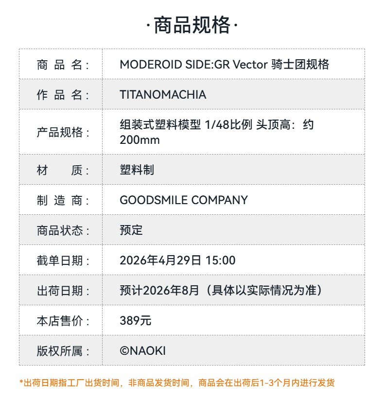【GSC预售定金】MODEROID SIDE:GR Vector 骑士团规格 TITANOMACHIA