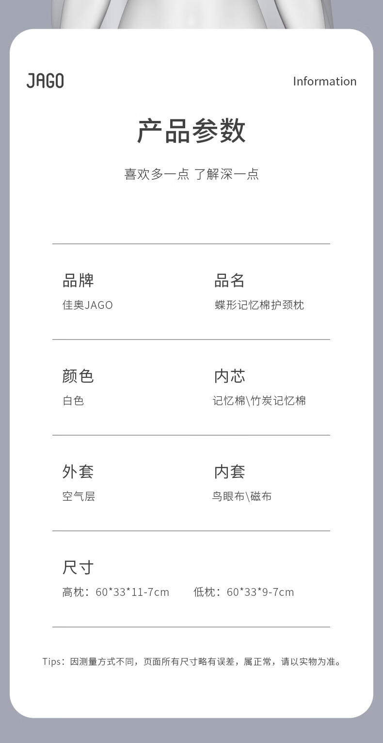 佳奥枕芯 慢回弹记忆枕 成人颈椎枕头记忆棉竹炭磁布颈枕呵护睡觉专用