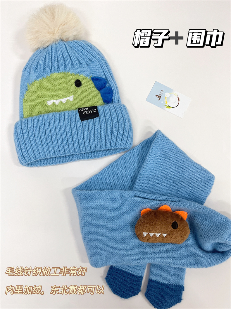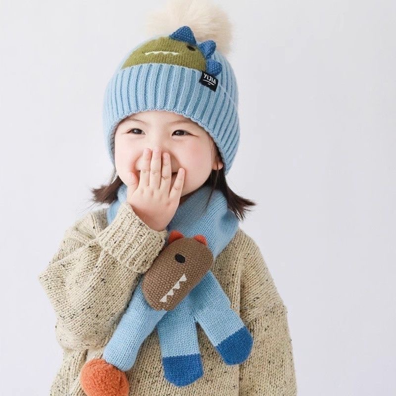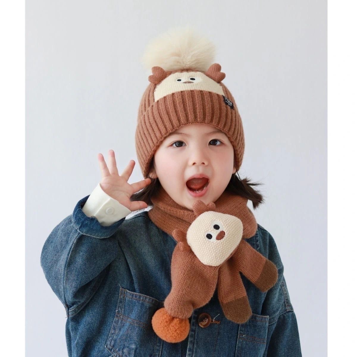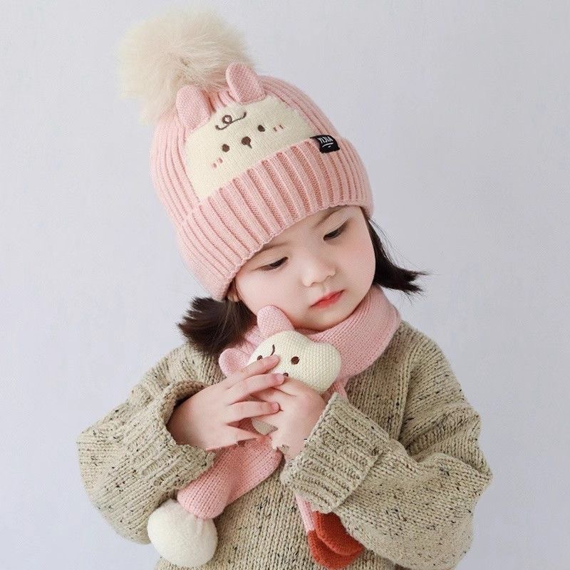 可爱到犯规【蝶时舞卡通针织帽子围脖套装】帽子➕围巾保暖两件套!冬季保暖好搭档!既可爱又保暖太哇塞! □ 针织面料超级有质感,设计简约百搭 □ 宝宝戴上洋气十足!一套价格! □ 弹力十足,8个月—8岁可戴