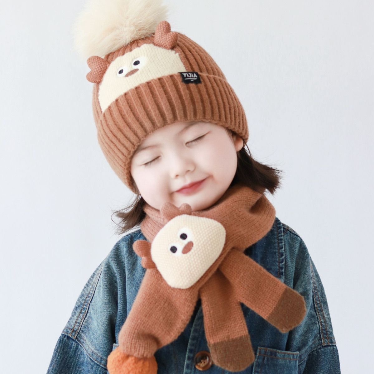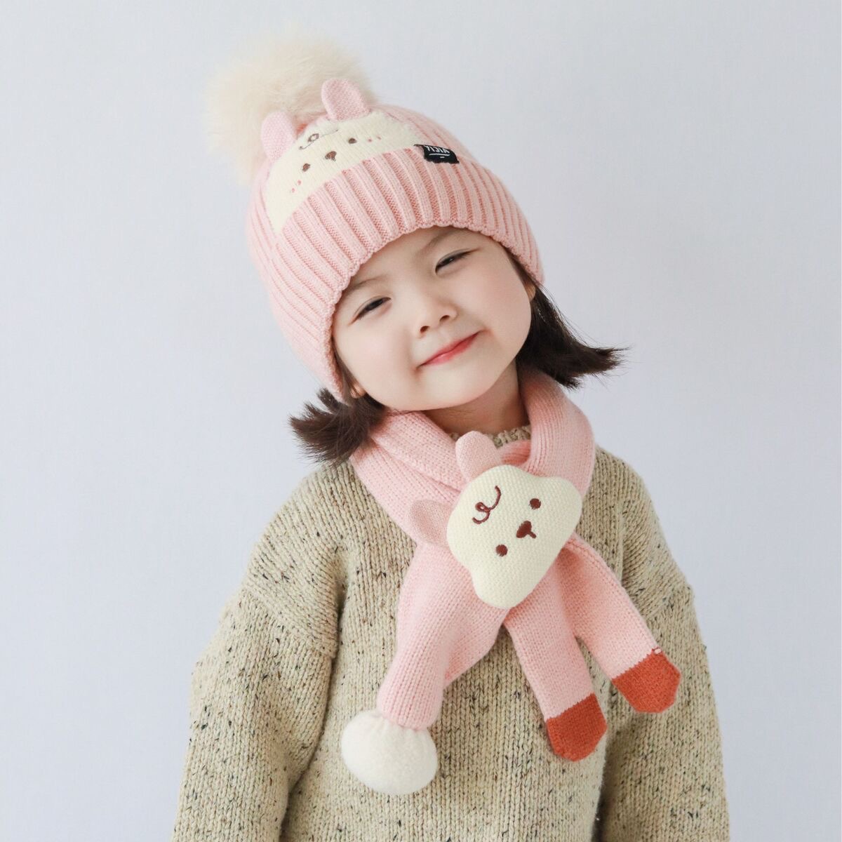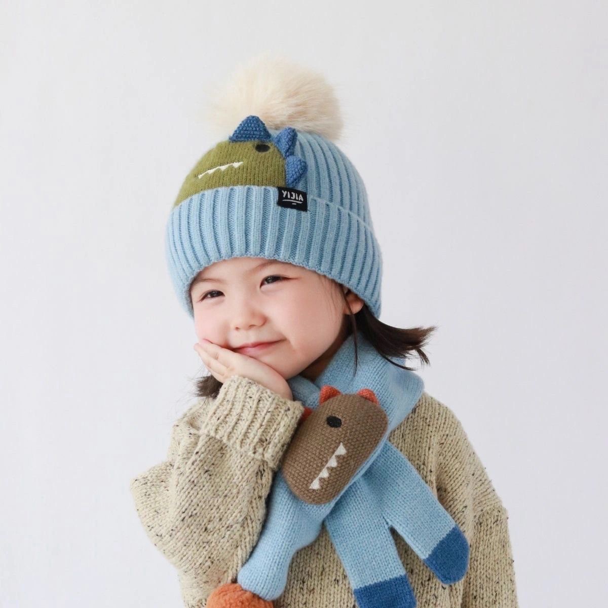 可爱到犯规【蝶时舞卡通针织帽子围脖套装】帽子➕围巾保暖两件套!冬季保暖好搭档!既可爱又保暖太哇塞! □ 针织面料超级有质感,设计简约百搭 □ 宝宝戴上洋气十足!一套价格! □ 弹力十足,8个月—8岁可戴