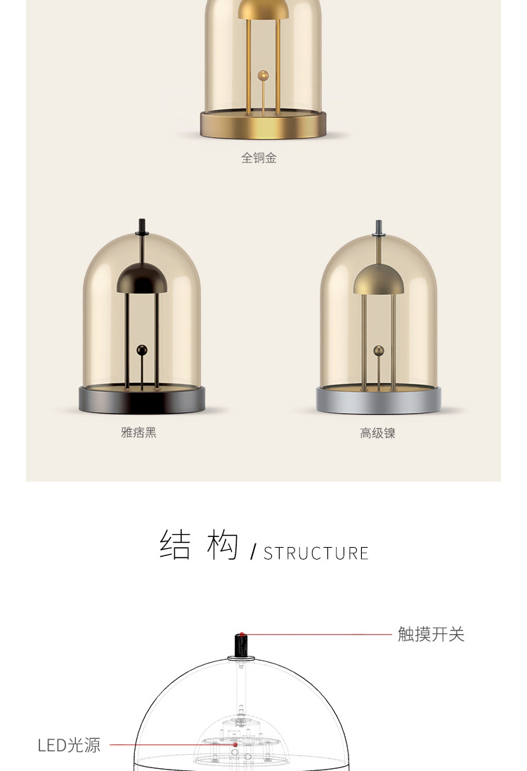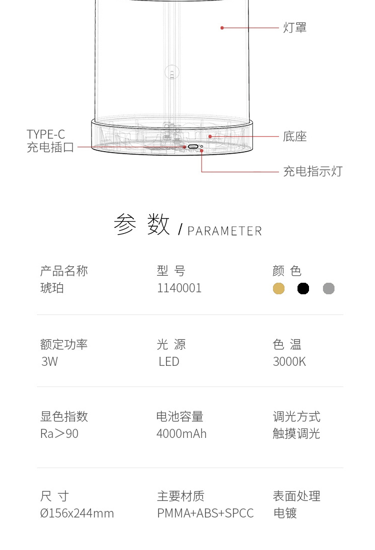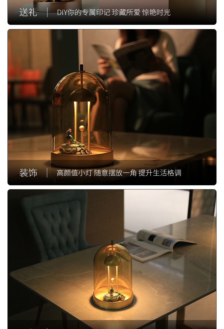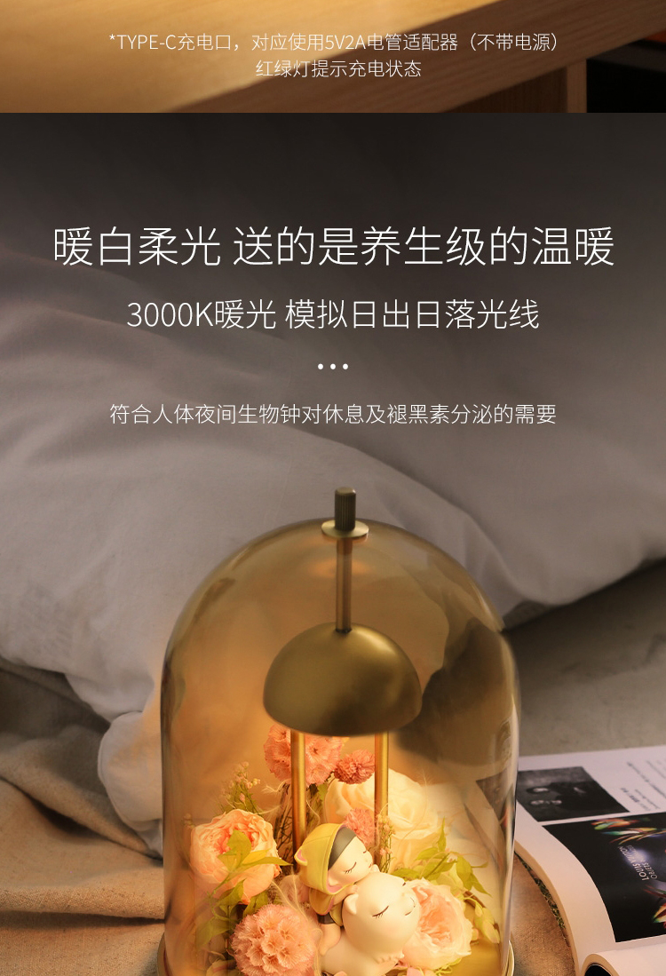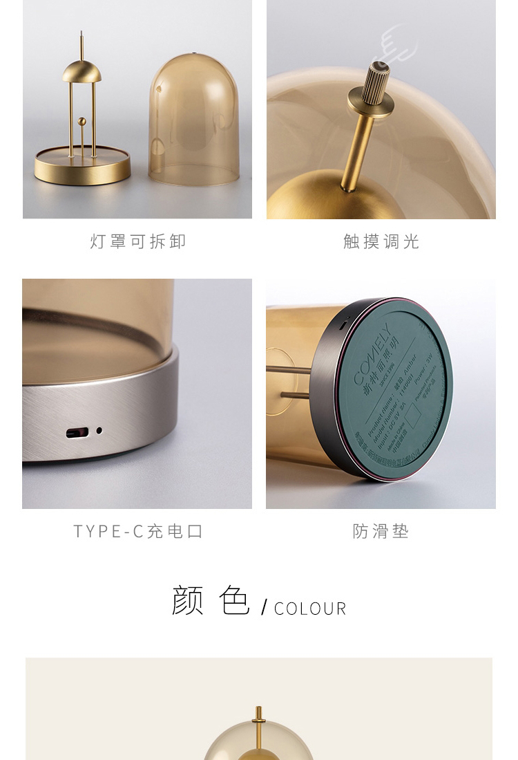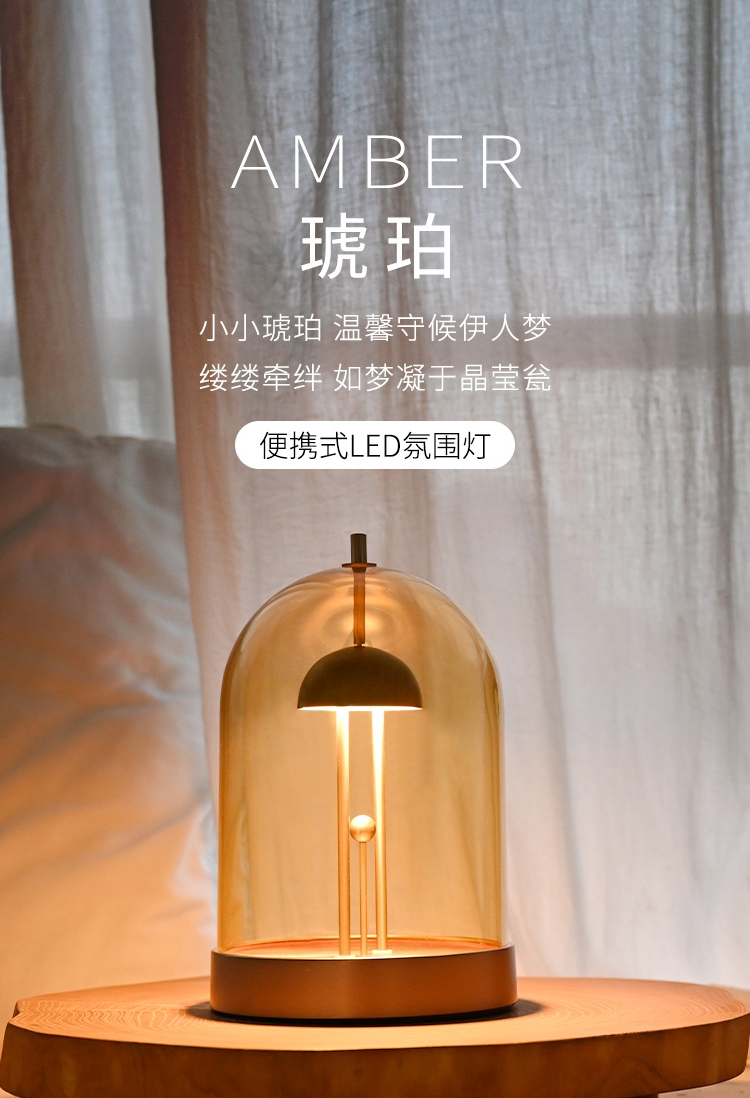 新特丽琥珀灯1140001玻璃卧室充电台灯 轻奢简约温馨少女ins触摸装饰床头灯