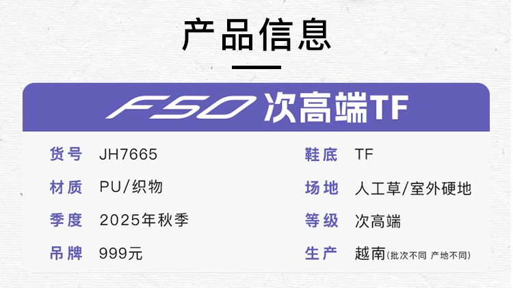 小李子ADIDAS阿迪达斯F50次高端TF碎钉运动训练足球鞋成人JH7665