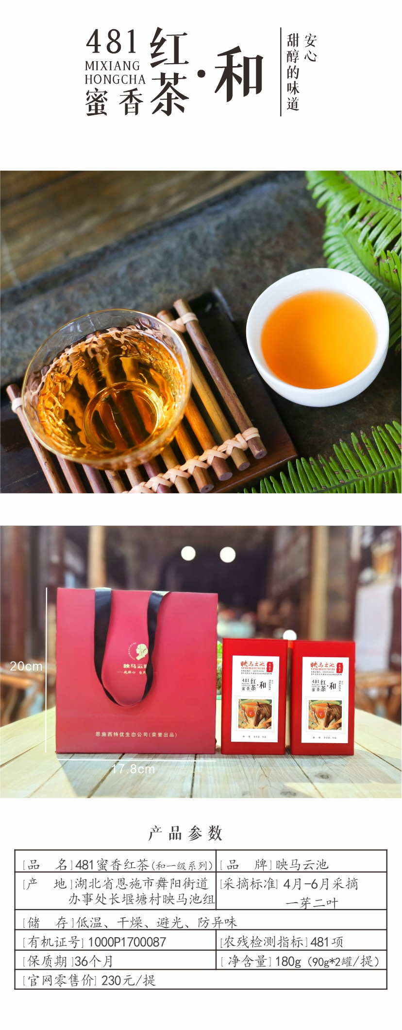 【恩施】映马云池481有机红茶 蜜香红一级 90克*2罐 茶叶