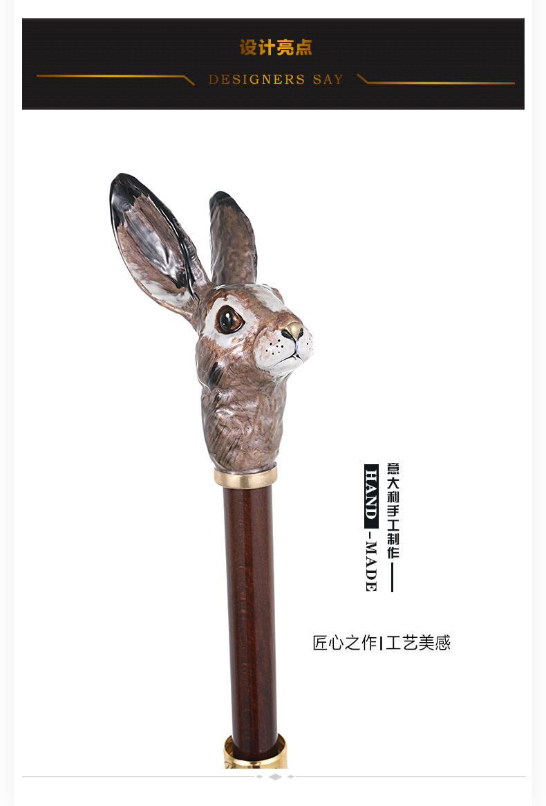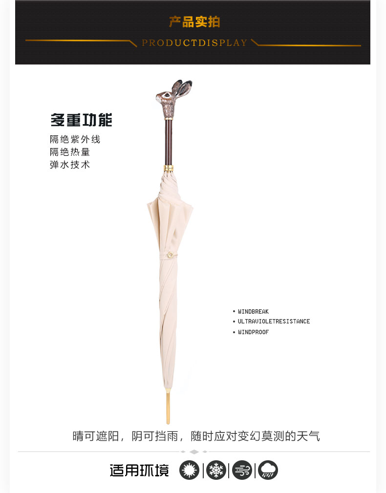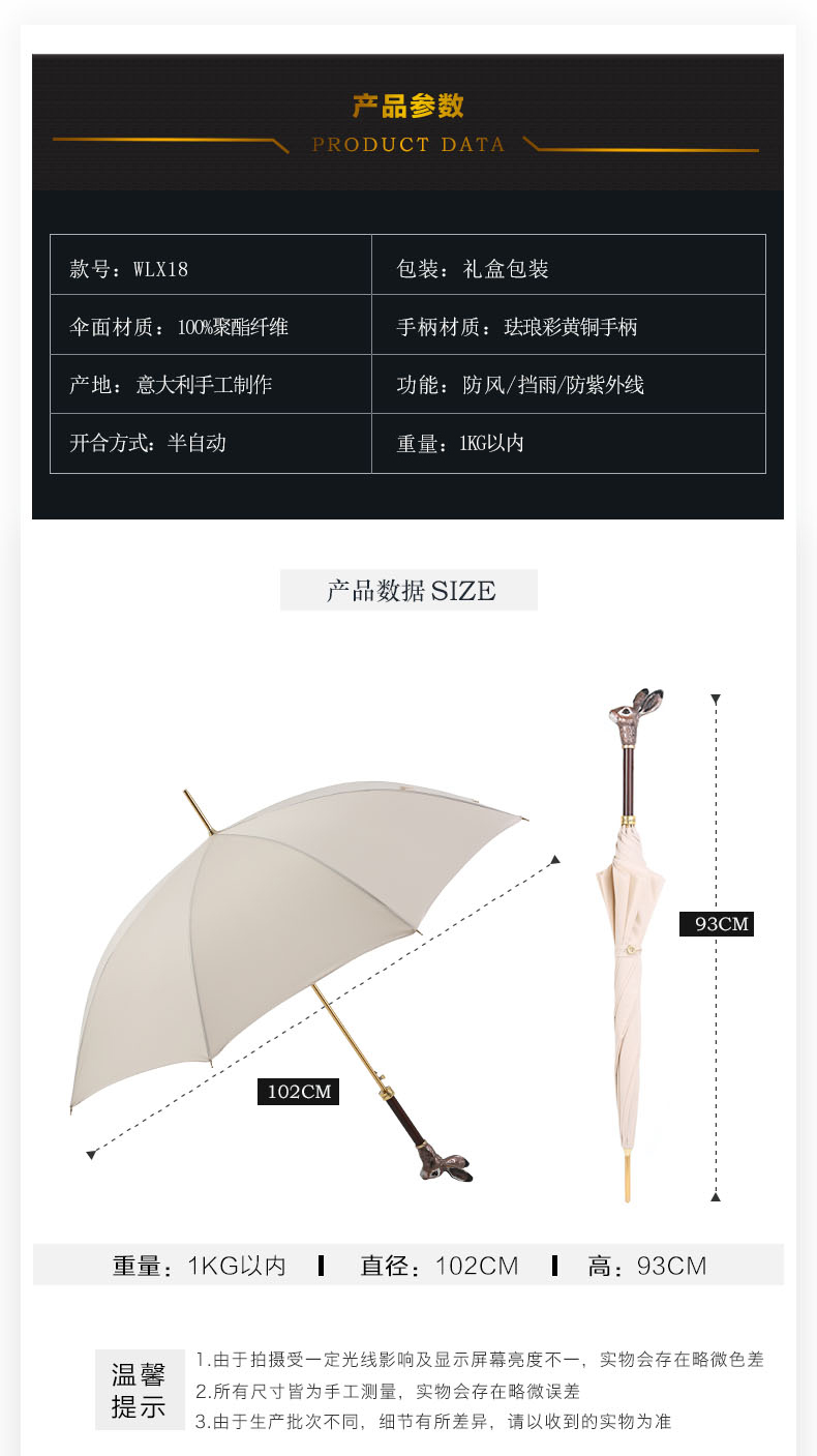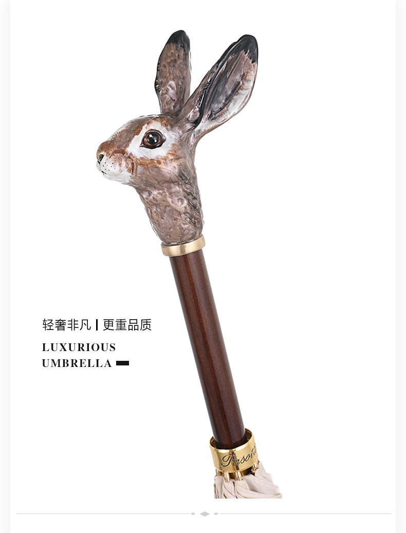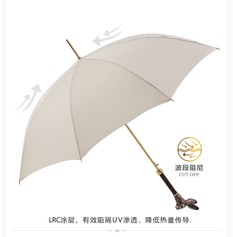 PASOTTI 意大利手工定制米白色珐琅彩绘野兔手柄限量女直柄晴雨伞WLX18K