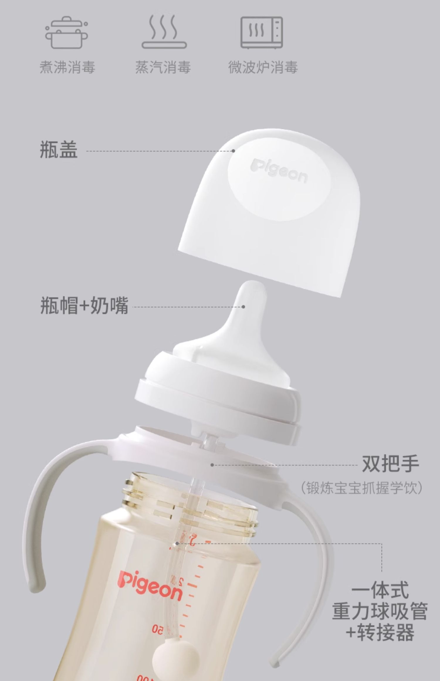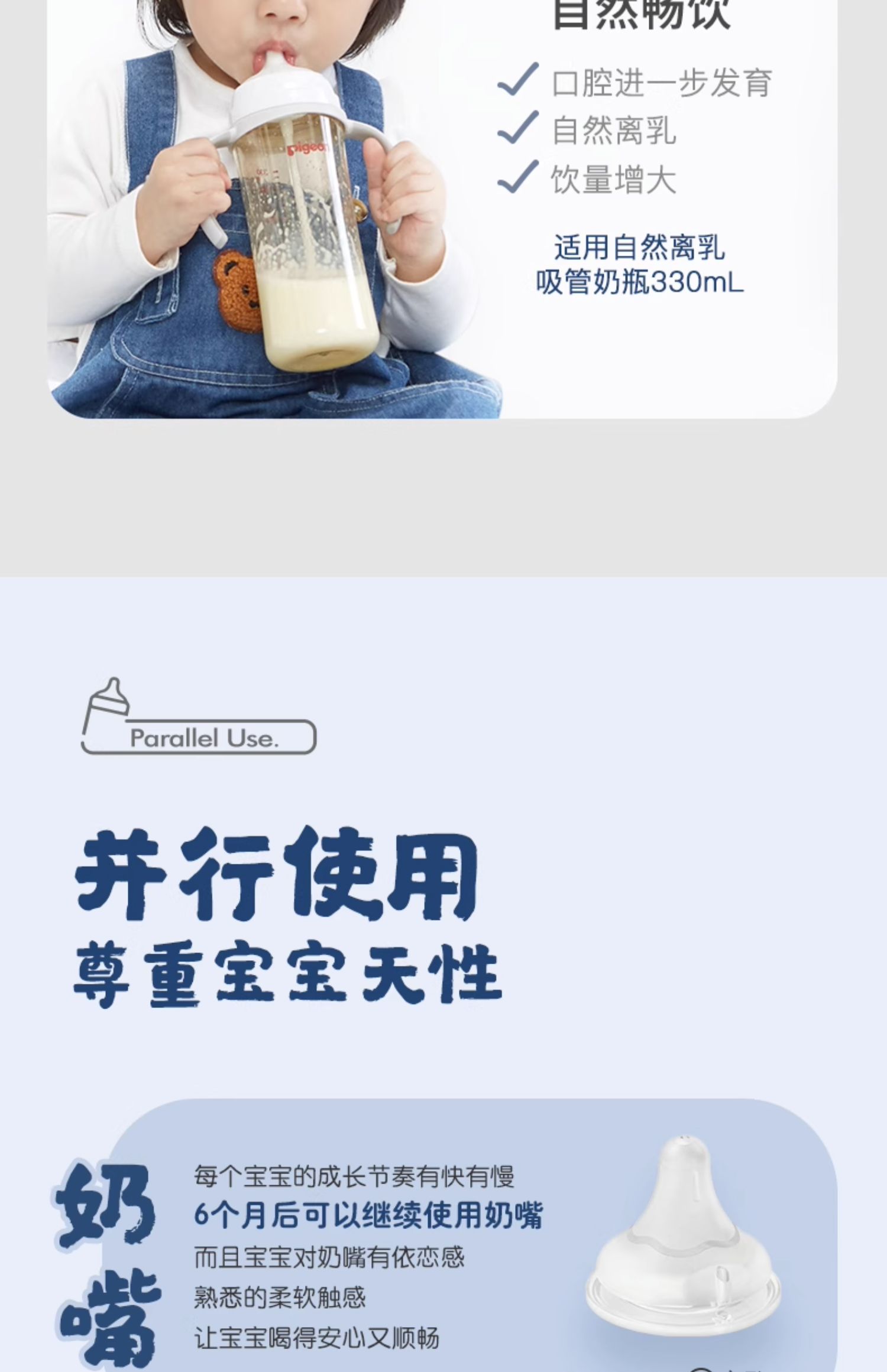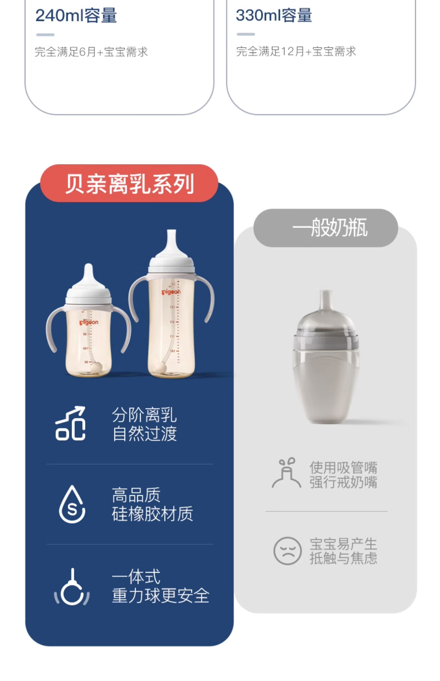 贝亲自然离乳重力球吸管奶瓶330mL-经典款 (12月+)