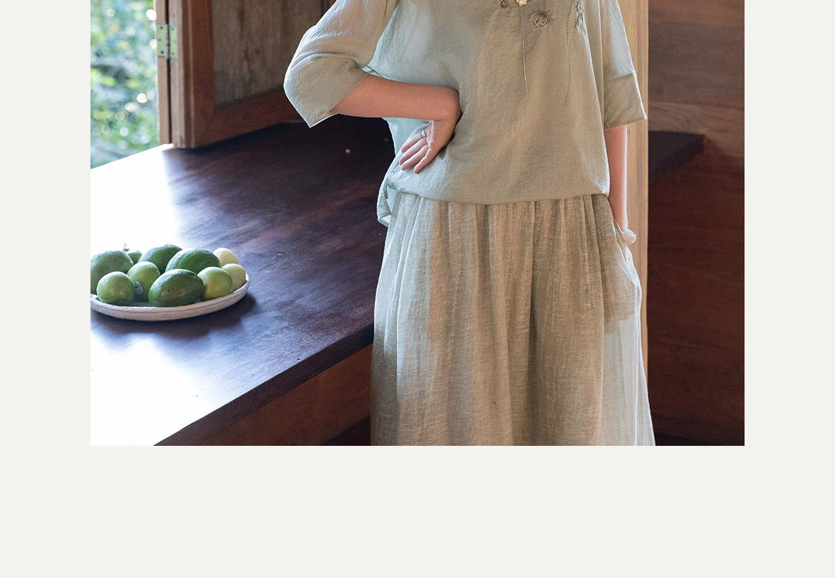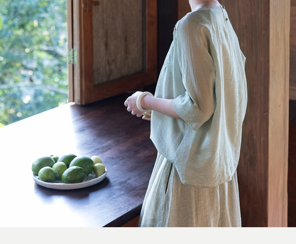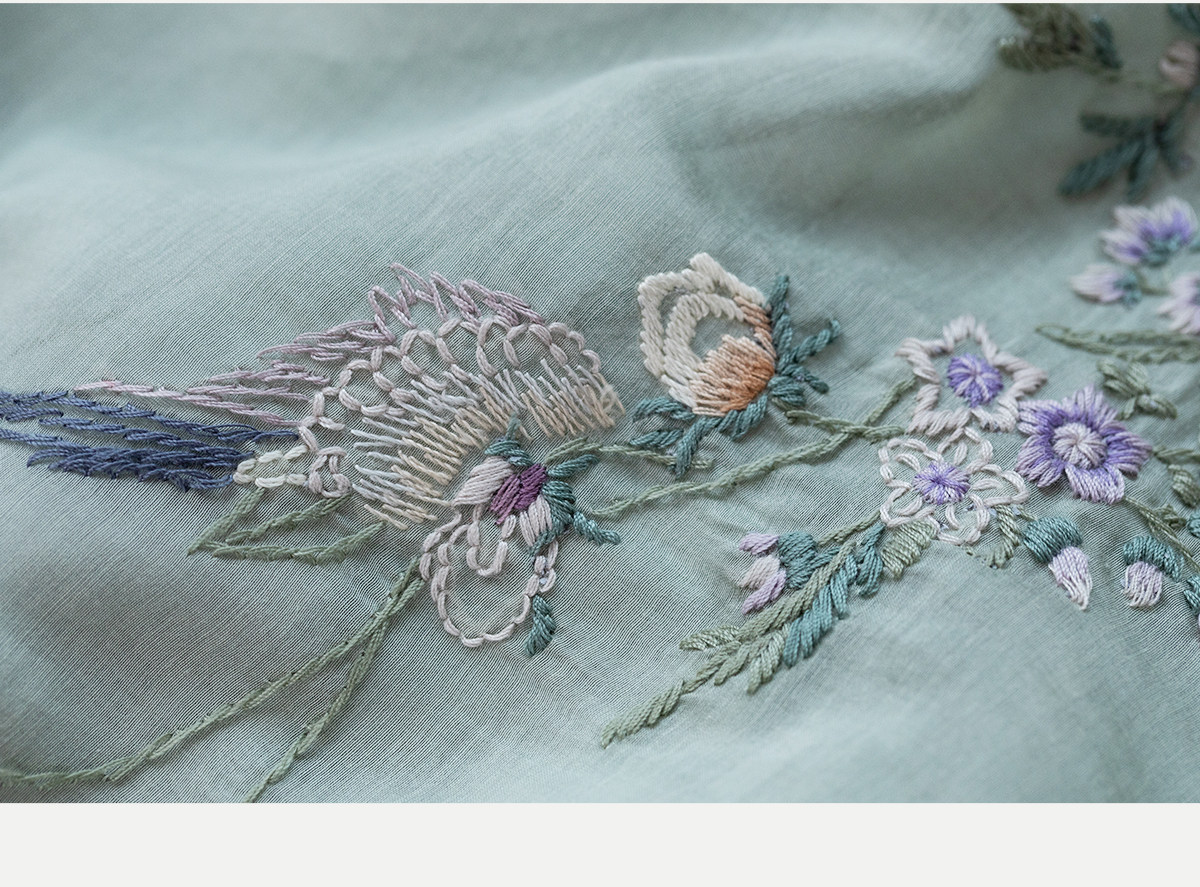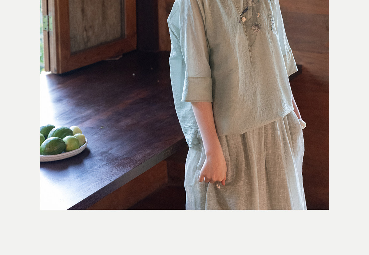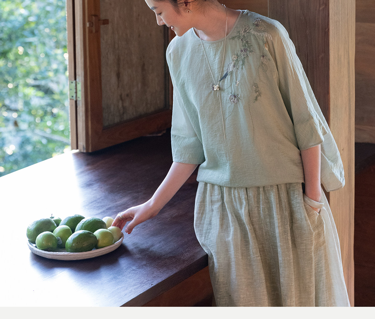牧衣游原创 丝棉手工刺绣小衫女新款古朴禅意七分袖圆领上衣 素笺